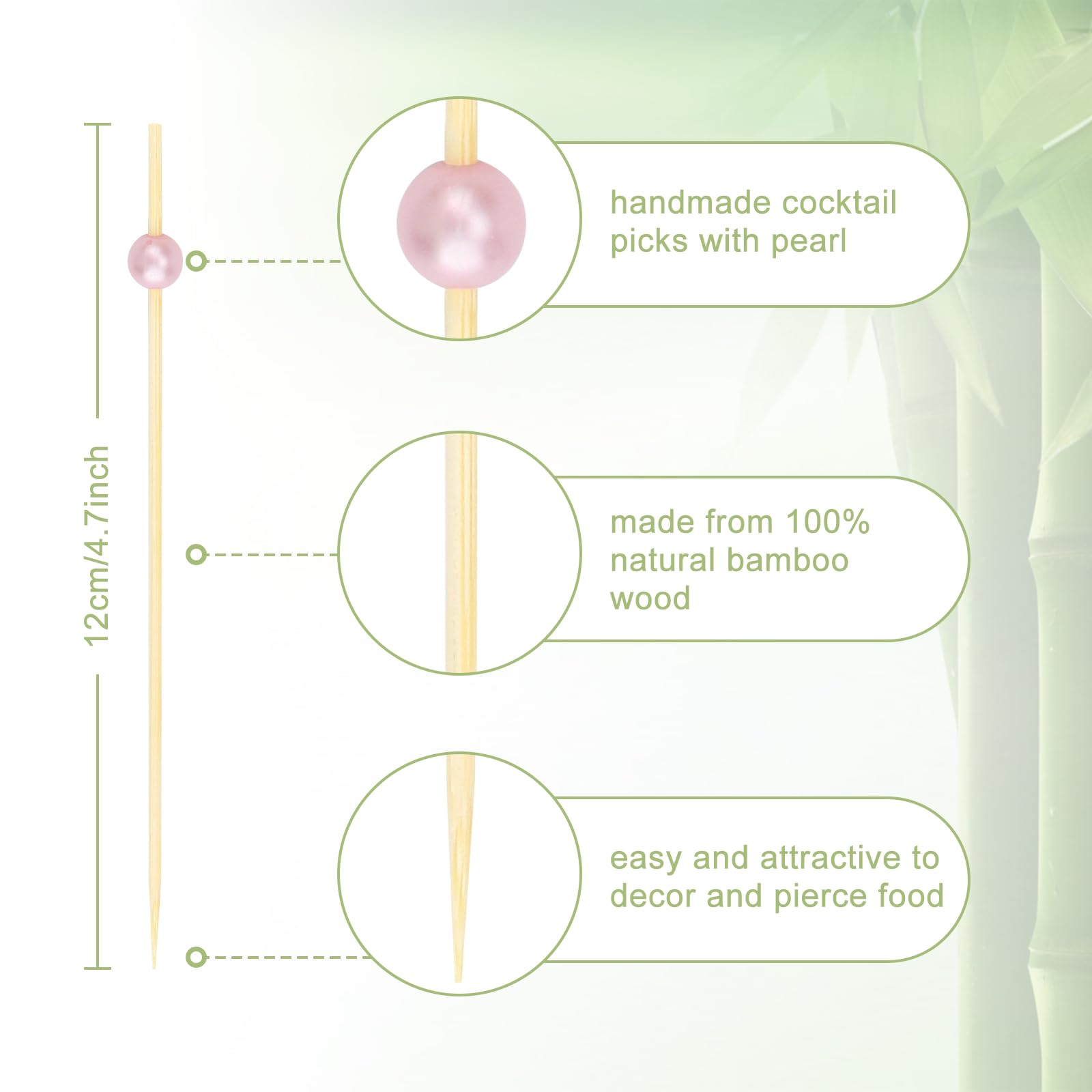HIGH QUALITY MATERIAL - These cocktail picks are made of natural bamboo and plastic pink pearl. After grinding and high temperature fumigation, our bamboo picks are smoothly neat, burrs-free and safe for food skewering.