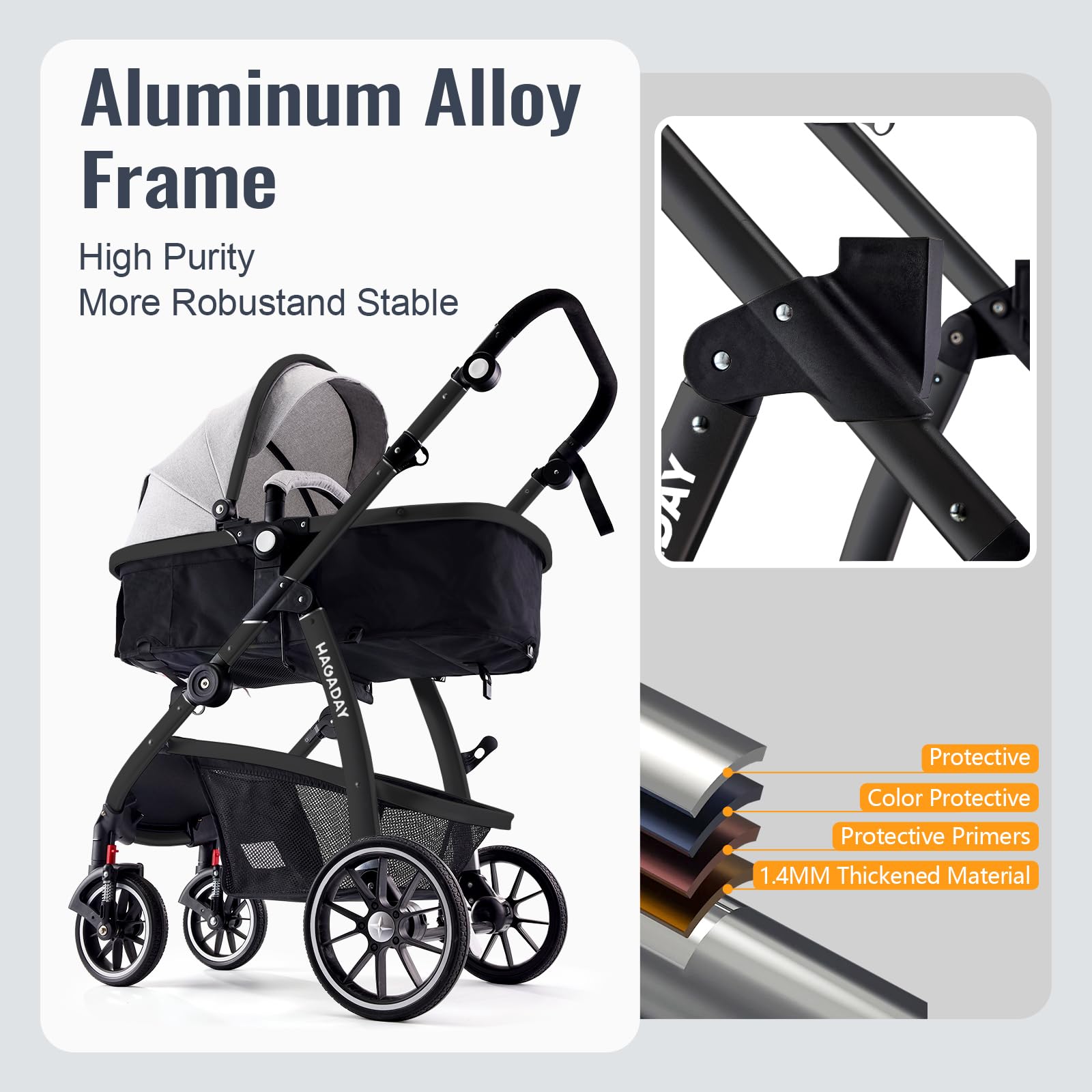 SUPERIOE BABY CARRIAGE: The Hagaday baby stroller surface is made from baby-friendly fabric that is skin-friendly and breathable. The soft cushion in the baby bassinet ensures comfort, and a foot cover provides warmth during colder weather.