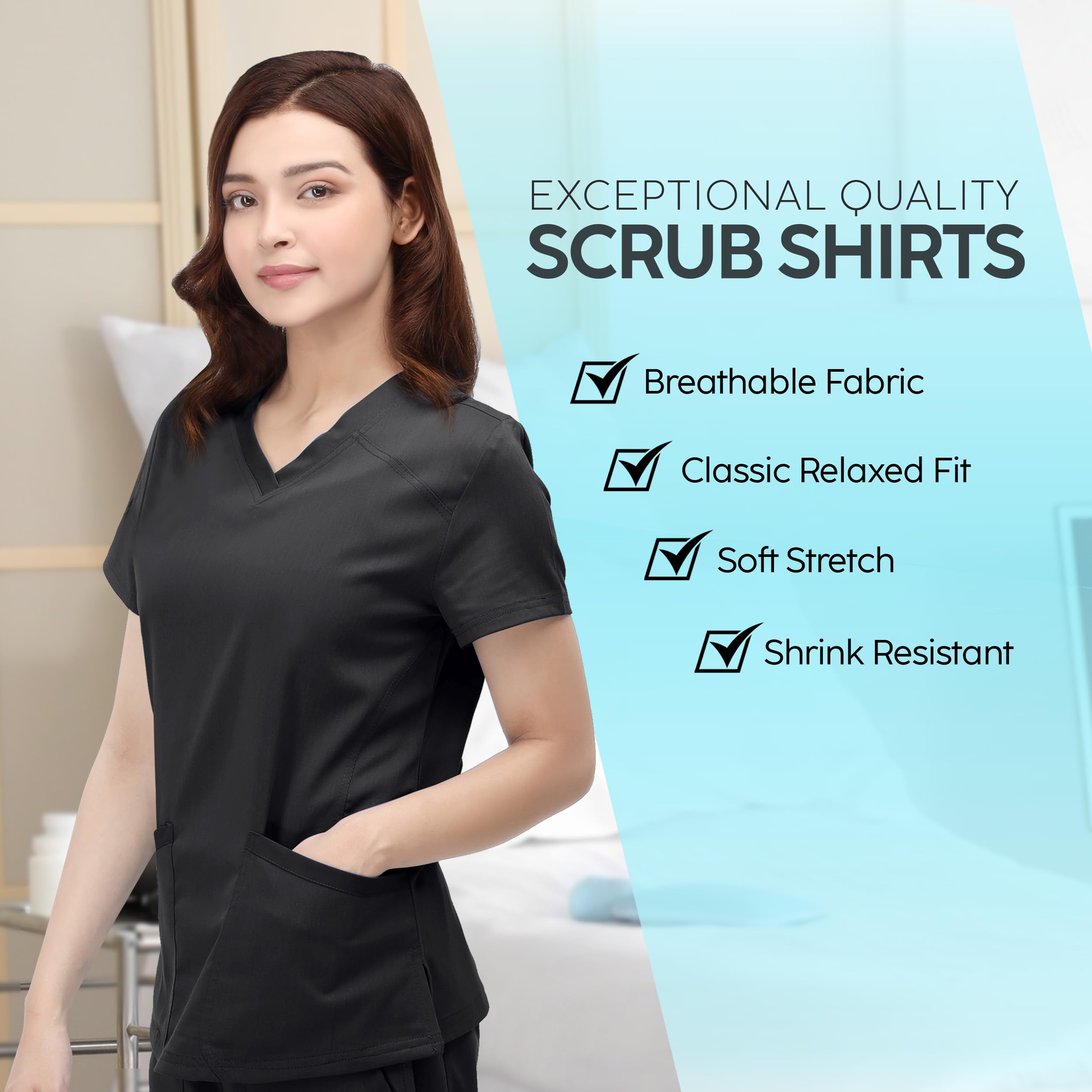 Durable Premium Fabric: Resilient fabric chosen for durability and comfort, providing a soft feel throughout the workday, making our women scrub tops durable and comfortable for long shifts.