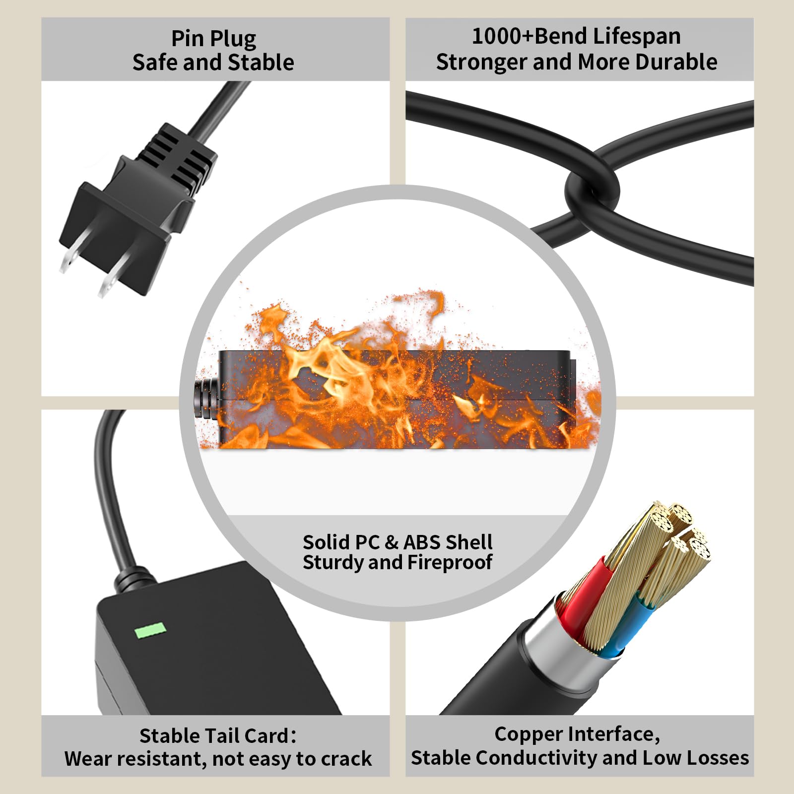 Power Specification: Input: 100-240v 50-60hz Output:19V 40W US Type Plug with 10 feet power cord and The Power Cord Bending Resistance is not Easy to Damage