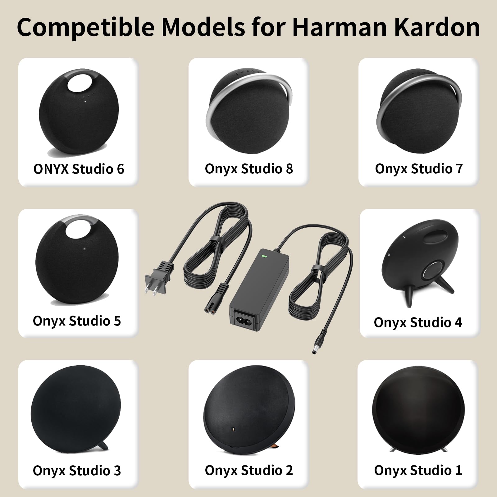 What you get:1*10FT 19V Charger Cord compatible with Harman Kardon Speaker ; Please feel free to contact us at anytime if you need any help while using this power cord for Harman Kardon