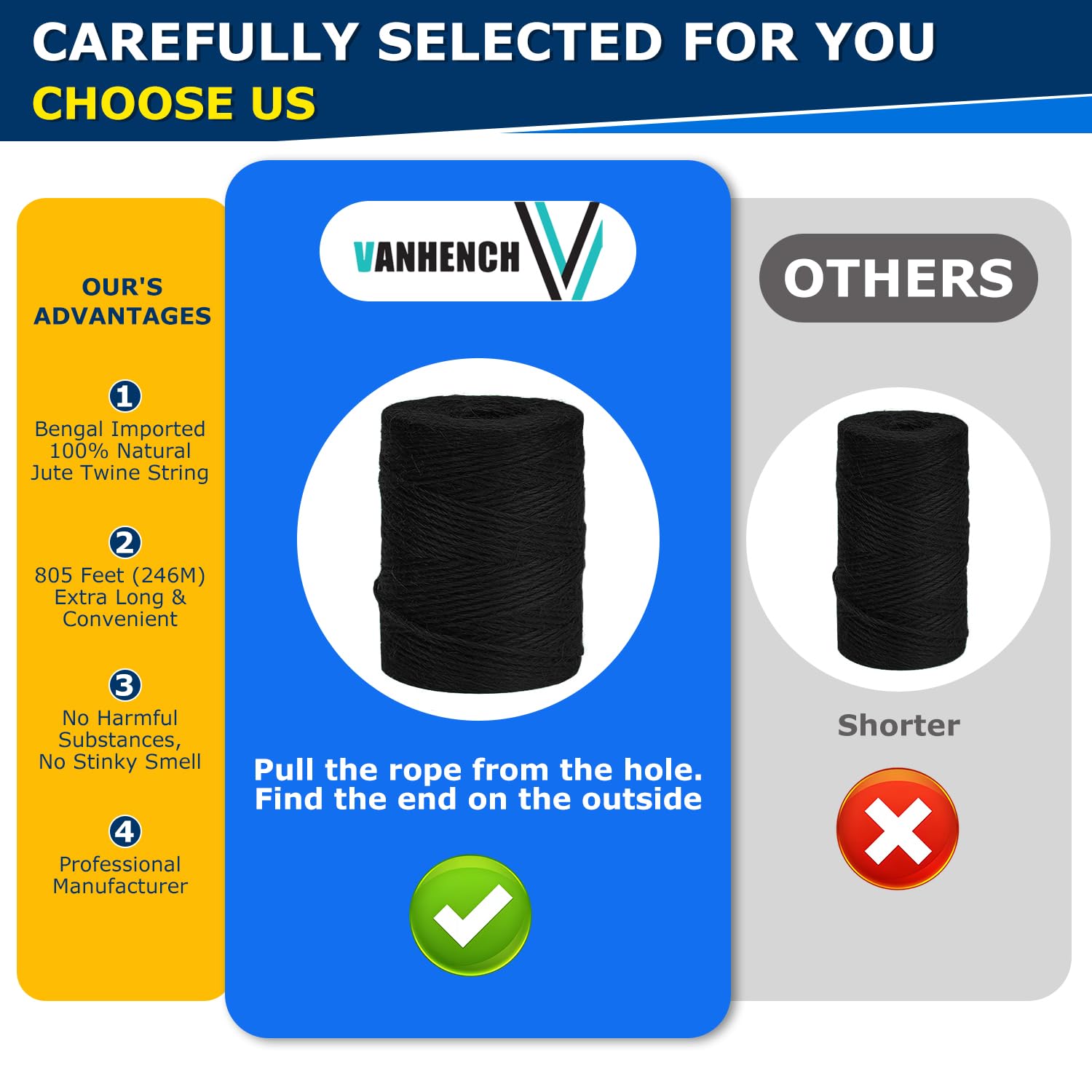 Vanhench Jute Twine 2mmX805ft (246m) jute Rope for Crafts Gardening Garden Plant Gift Wrapping Arts & Crafts Art Decoration Packing Material Christmas Twine Bulk Heavy-Duty (Black)