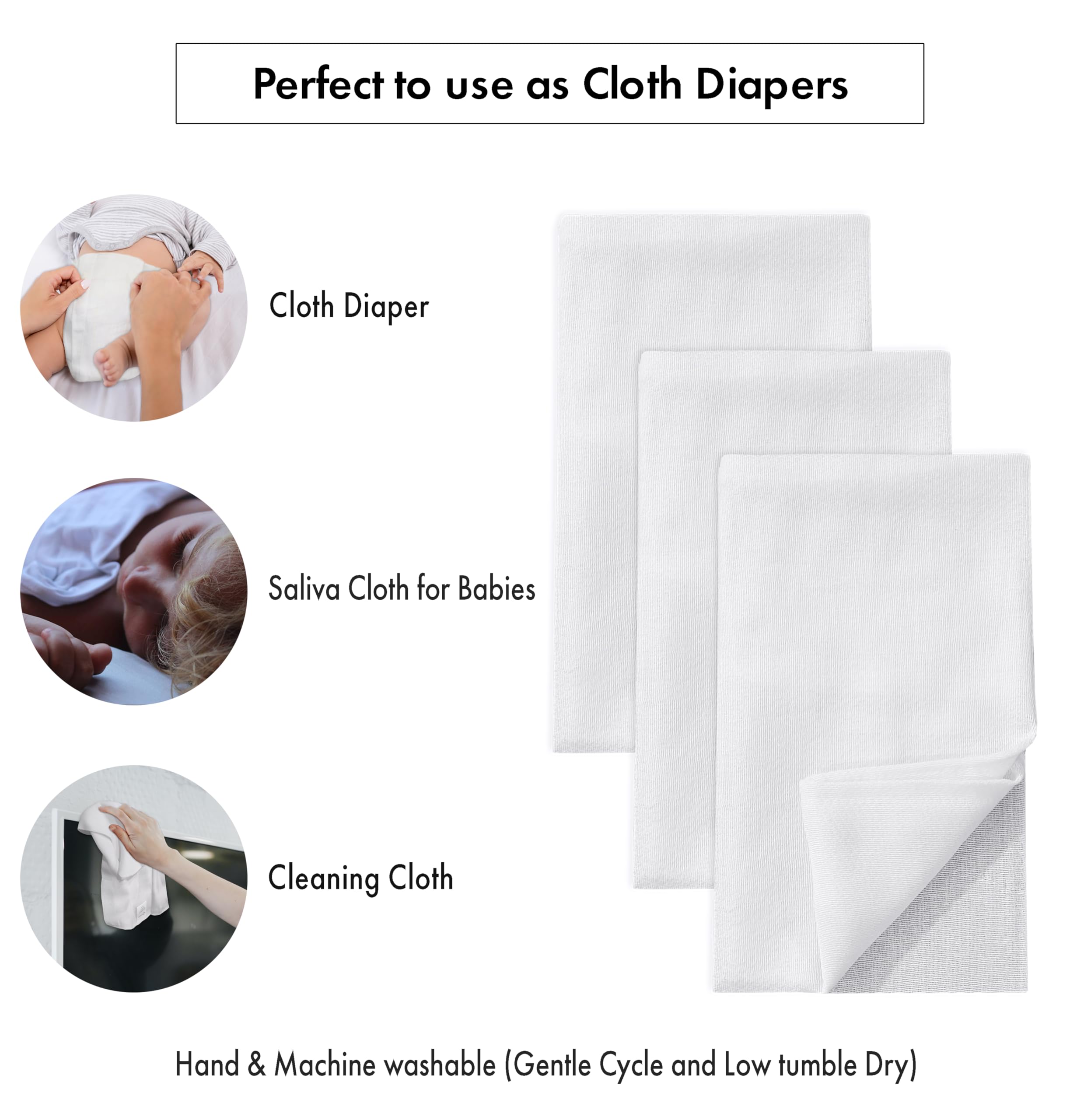 Perfect to use as Cloth Diapers Burp Cloths, Unpaper Towels, Dish Drying, Dusting Cloth, mop up any spill, dry your hands, and customized folding is great for diaper Changing.