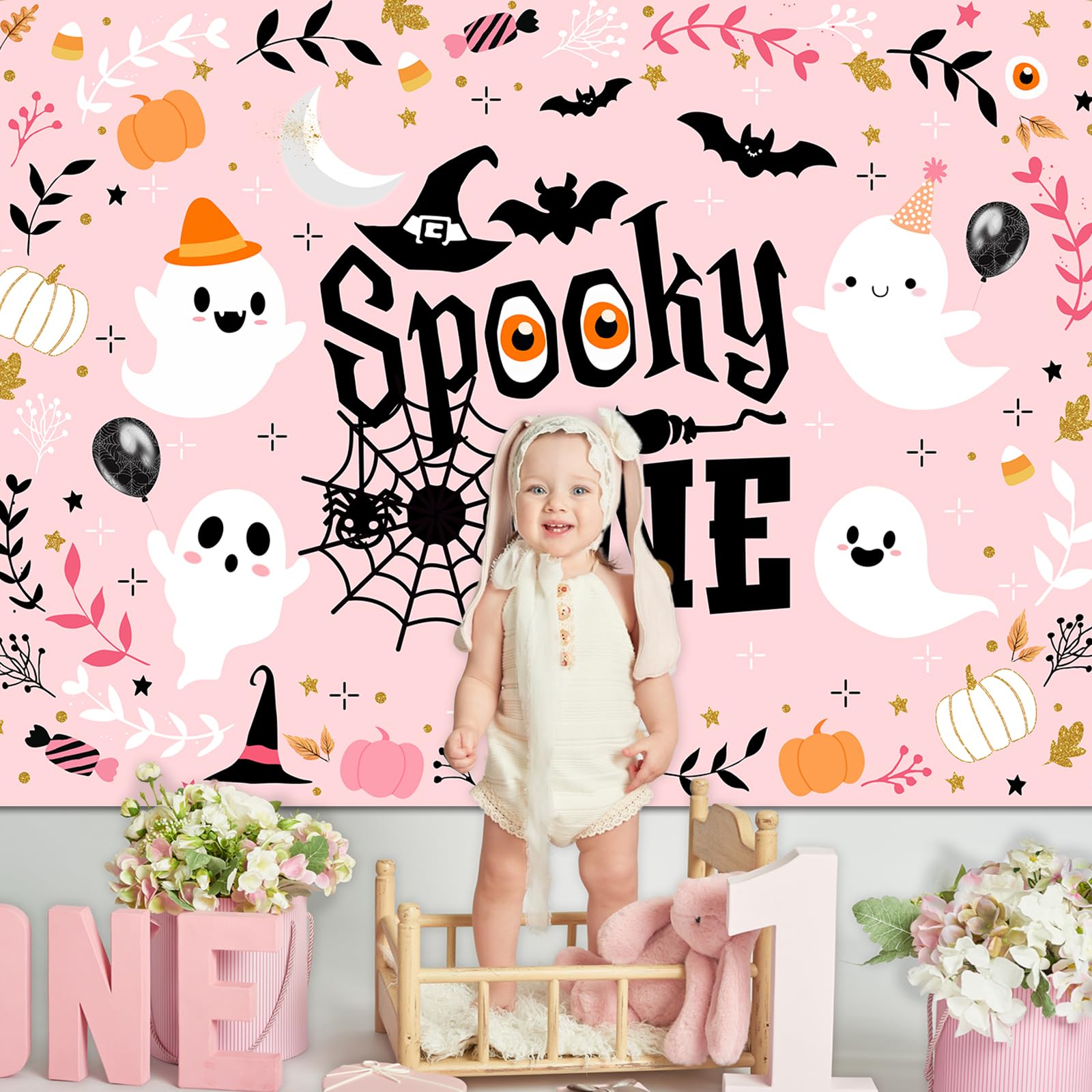 What You Get: 1 ghost girl 1st birthday backdrop without the pocket; Please note that the stands and clips are not included; Slight wrinkles can be removed by ironing the back side at low temperature