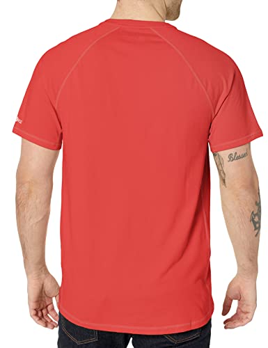 Description On the job or under the sun, this men's Carhartt t-shirt keeps you cool and comfortable. UPF-rated jersey fights off sweat and dries fast so you can stay focused on the task at hand. Ventilated panels keep the air circulating, and a drop-tail hem provides extra coverage.