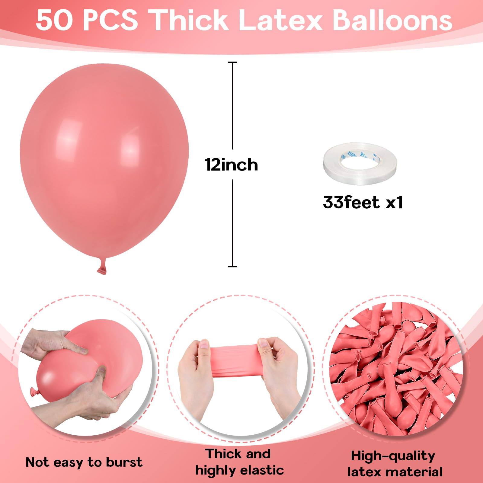 🎈 Round Balloons Set Includes - Each balloon kit contains 50pcs dusty pink 12 inch balloons for balloon arch kit balloon garland decorations and 1pc vintage balloon ribbon (total of 33 feet). The right quantity of party balloons and the most suitable color allow you to create a visually striking and captivating atmosphere that will leave your guests in awe.
