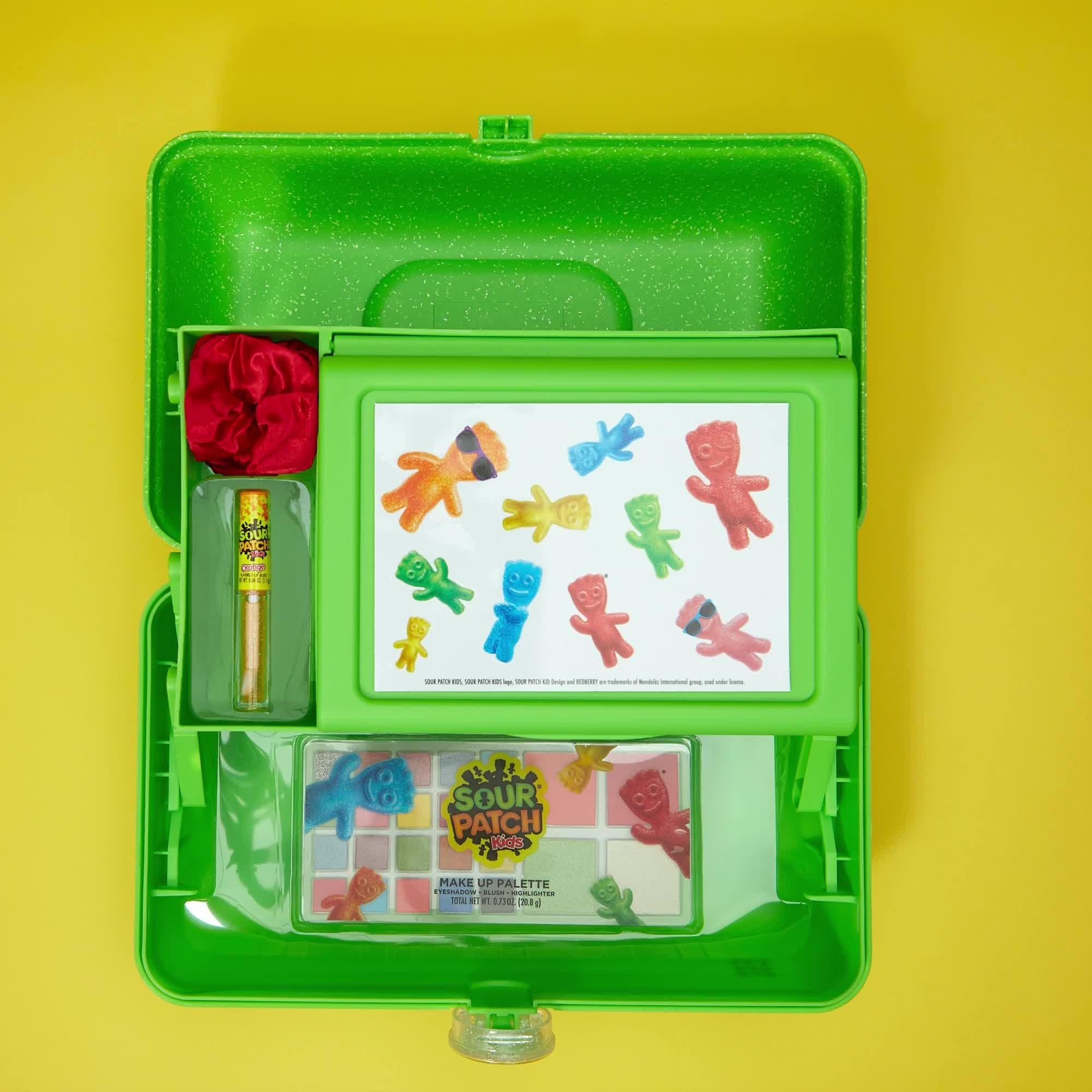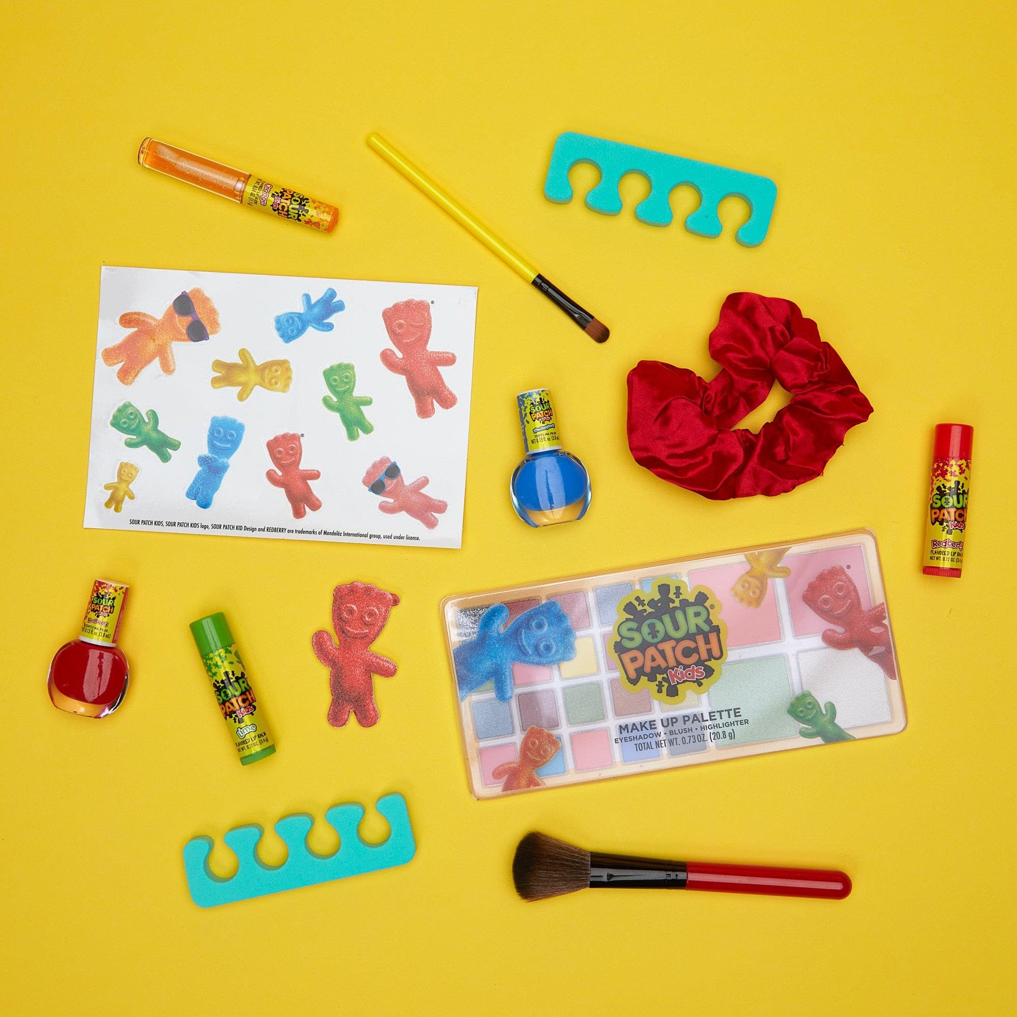 CANDY-THEMED COSMETICS SET: This Caboodles organizer comes with 1 lip gloss wand, a 24-piece makeup palette, 2 lip balms, 2 nail polishes, 1 hair tie, 1 sticker sheet, 1 nail file, 2 toe separators and 2 makeup brushes.