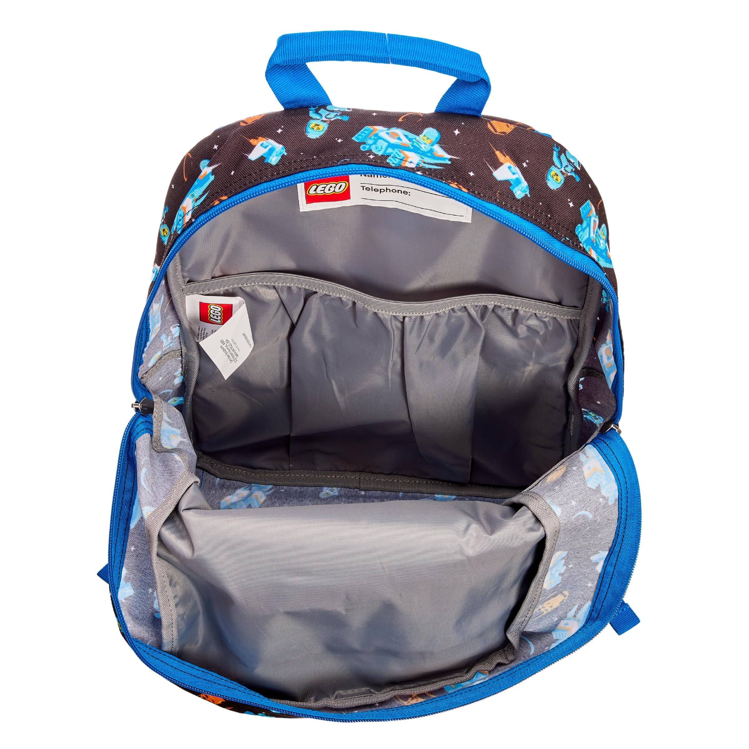 Description Gear up for city duty with the Heritage Classic Backpack. Boasting ergonomically padded contoured shoulder straps and a soft poly tricot lining, carrying is effortless and comfortable. The padded haul handle adds convenience for easy transport. Achieve balance with the adjustable front sternum strap, ensuring a secure fit with a simple click. Featuring a padded back panel detailed with LEGO brick stitch, comfort meets style seamlessly. Access essentials effortlessly with the roomy main zipper compartment and interior slip pocket designed to keep items close to the wearer's back for optimal weight distribution. Stay hydrated on the go with the side mesh pocket designed to hold water bottles or quick-access items. Plus, the front D-ring offers a convenient attachment point for lunch bags or additional belongings. Measuring 16” (40.6cm) high, 11” (28cm) wide, and 6.5” (16.5cm) deep, it provides ample space for books, snacks, and more. Select from a variety of designs to flaunt your LEGO flair and express your individuality with our City Heritage Classic Backpack. Note: Matching Lunch Bags are available separately to complete your ensemble.