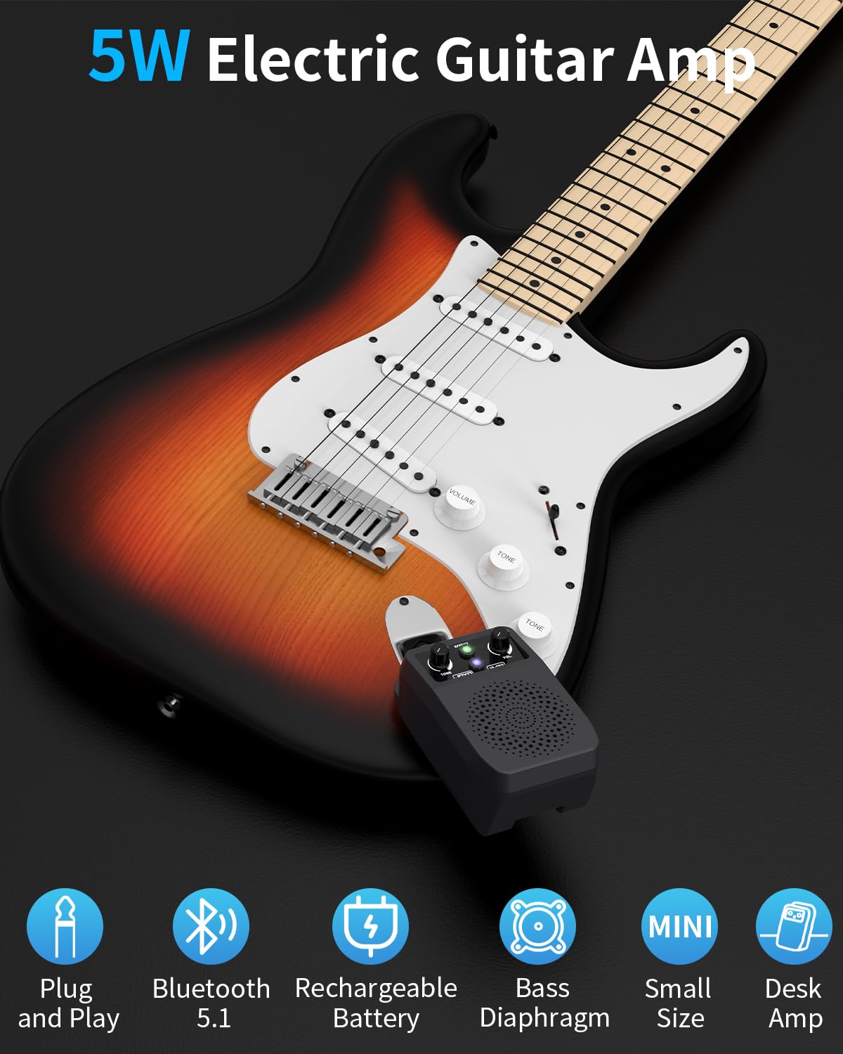Compact and portable, plug and play - Plug in this mini guitar amp and use it anytime, anywhere, helping you get rid of the trouble of using cords.