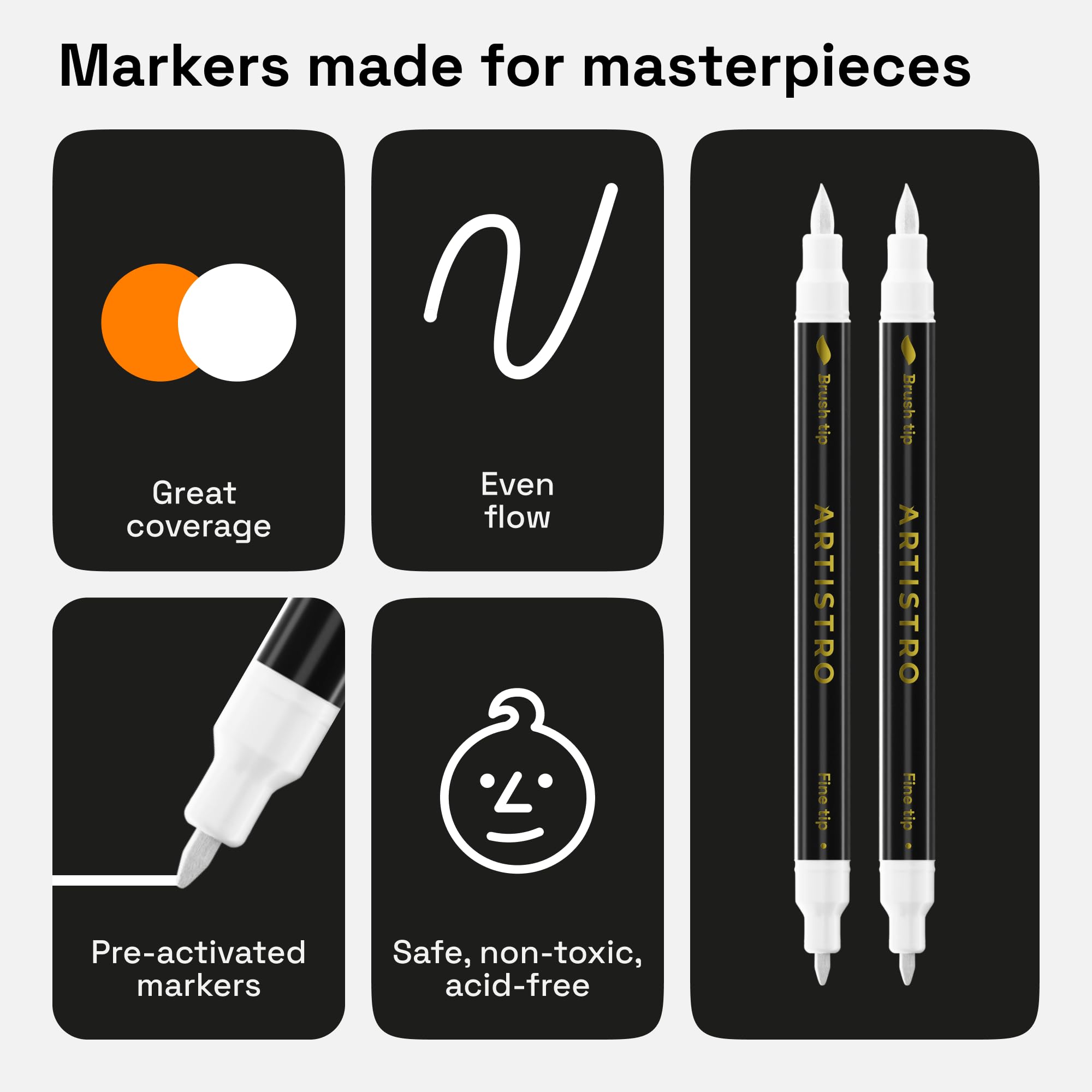 ARTISTRO 2 White Dual-Tip Fabric Markers - Fabric Decorating Kit - Permanent for Clothes - Acrylic Paint Pens for Sneakers, Bags, Shoes, Textile, Canvas, Sewing, Craft, DIY - Brush and Fine Tip