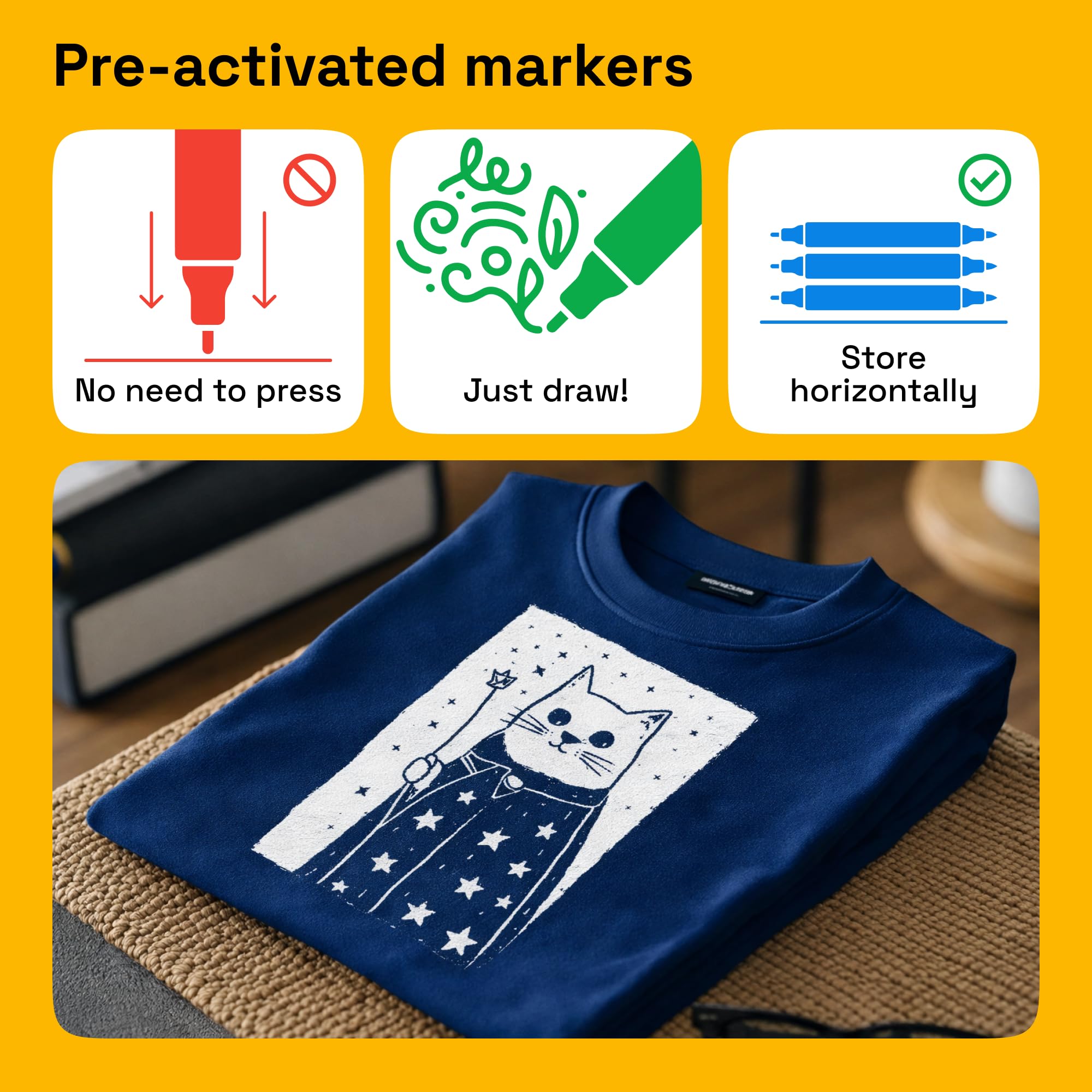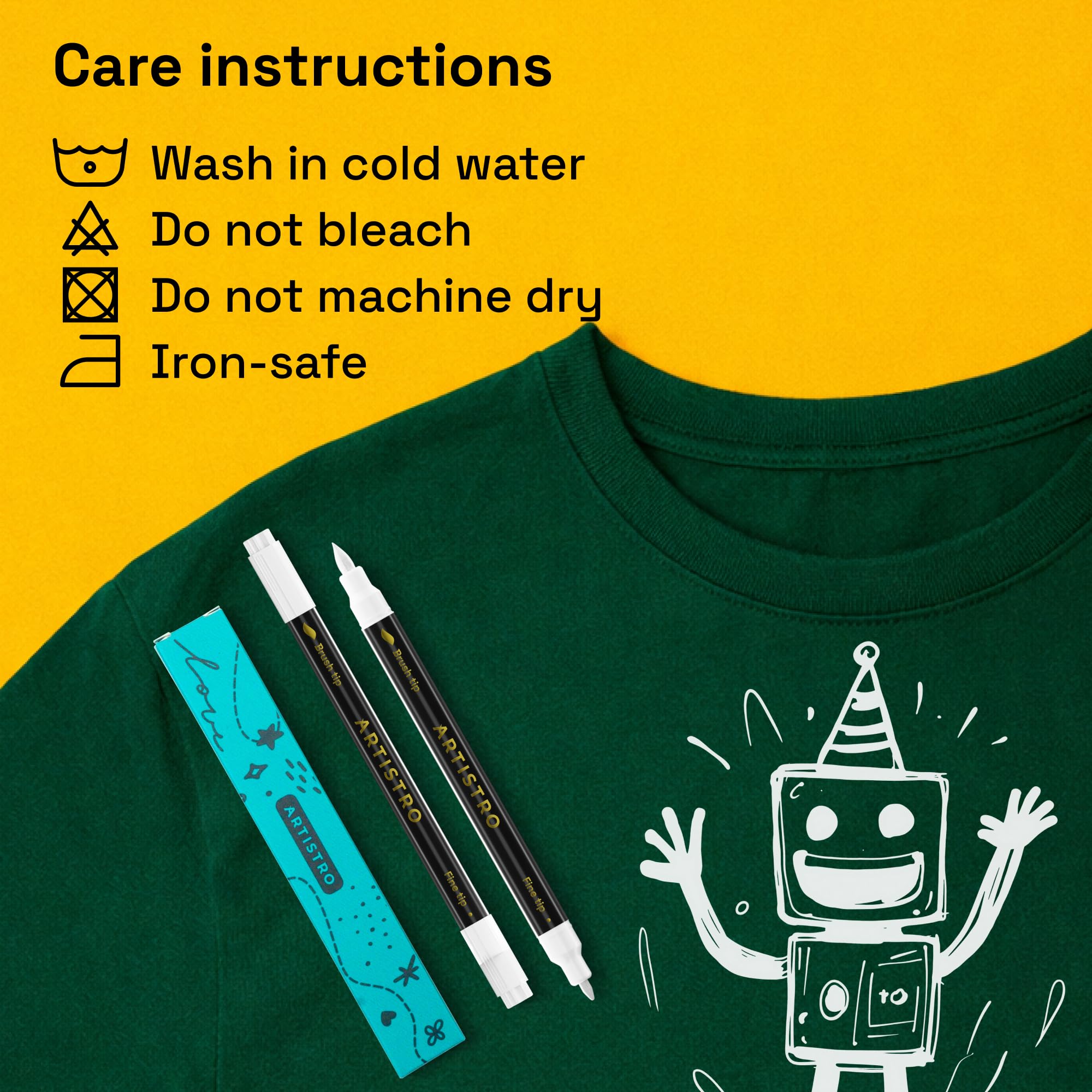 Easy-to-Use: These fabric pens for clothes permanent are easy to use and are even perfect as fabric markers for kids! Simply apply your design to clean, dry fabric. After the clothes paint is fully dry, set the design by ironing it on medium heat (without steam) for 3-5 minutes to ensure long-lasting results.