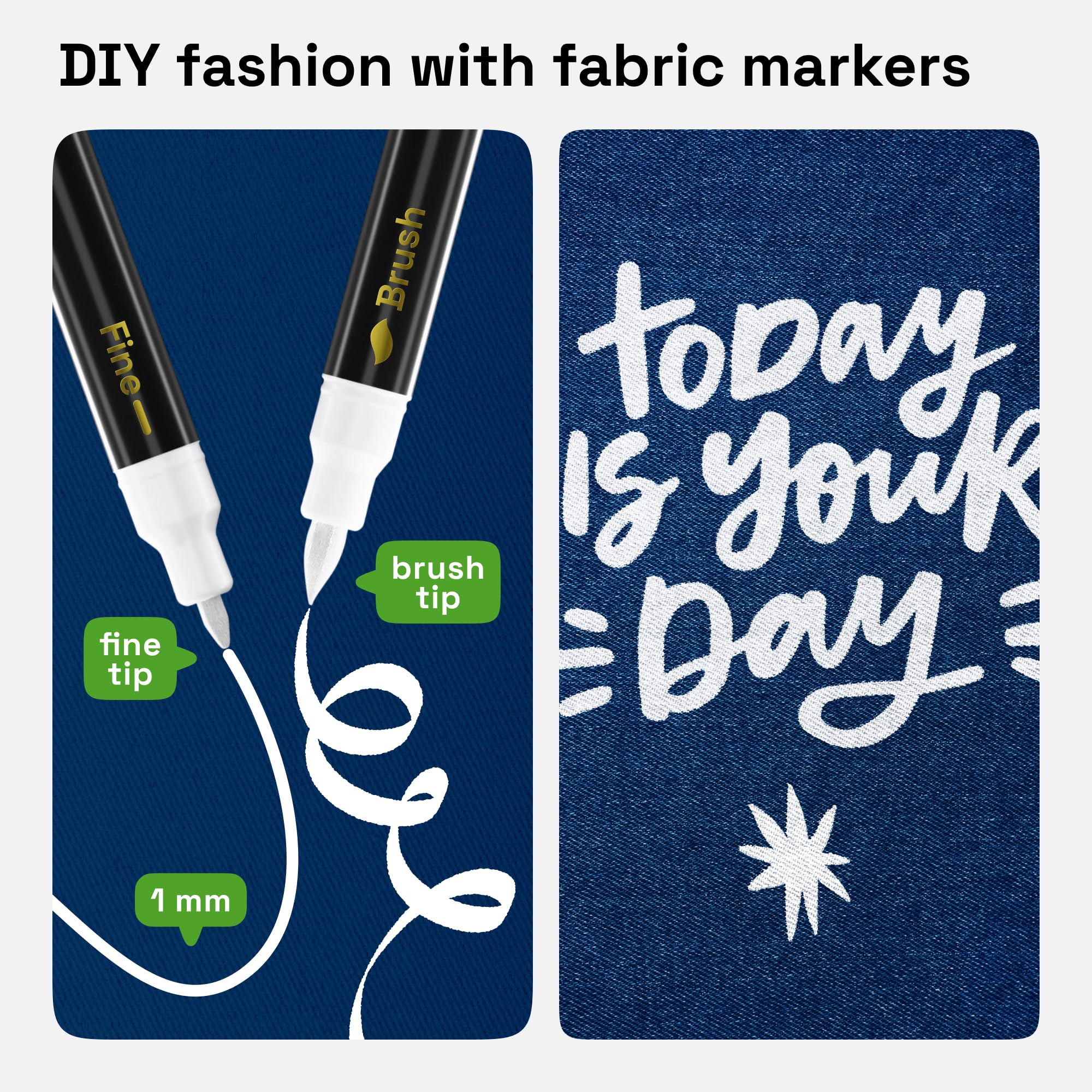 Dual-Tip: These fabric markers offer both a 1mm fine tip for precise details and a flexible brush tip for creating broader strokes, shading, and filling in larger areas. These fabric markers permanent for clothes are perfect for all types of fabric artwork, from fine lines to expressive strokes.