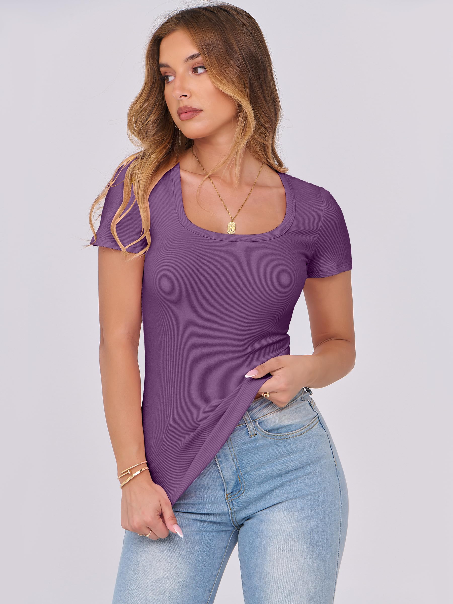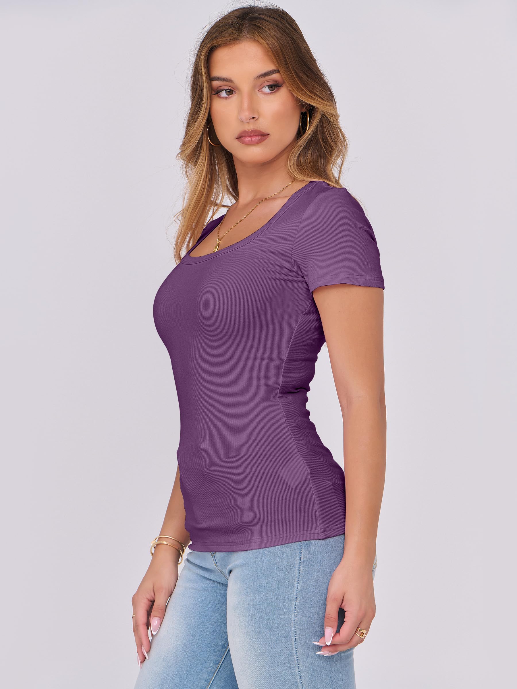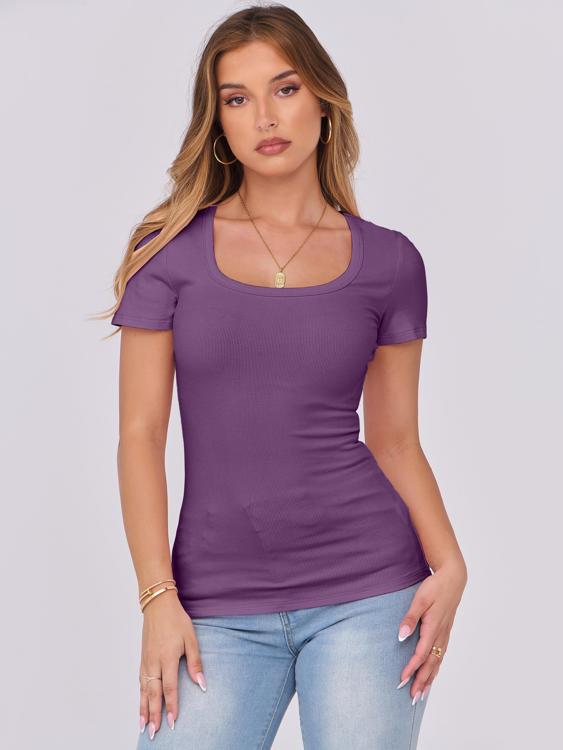 Features - Womens summer tops are designed with ribbed knit, scoop neck, short sleeve, slim fit. Suitable for daily wear, home, work, street wear, party, dates, vacation, shopping, cafes and other casual occasions.