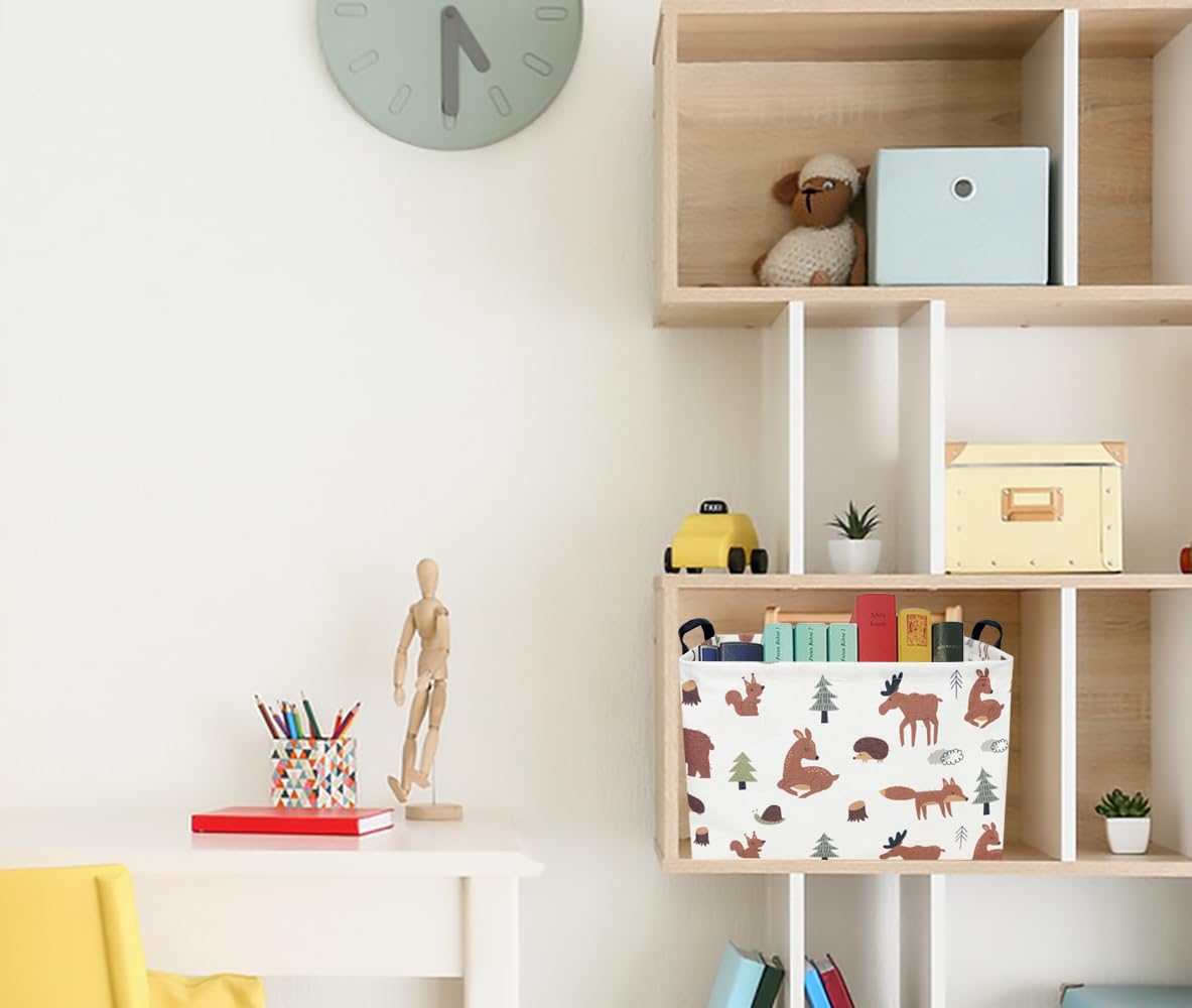 STYLISH DESIGN:Cute printed pattern is specially designed for kids, which combines both of the ornamental and practical forms. The toy organizer are not only household life good helpers but also charming decorations in kid's room.