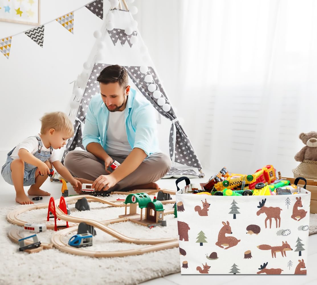 MATERIAL:The toy basket is made of linen & canvas fabric, waterproof PE coating inner, lightweight and durable.