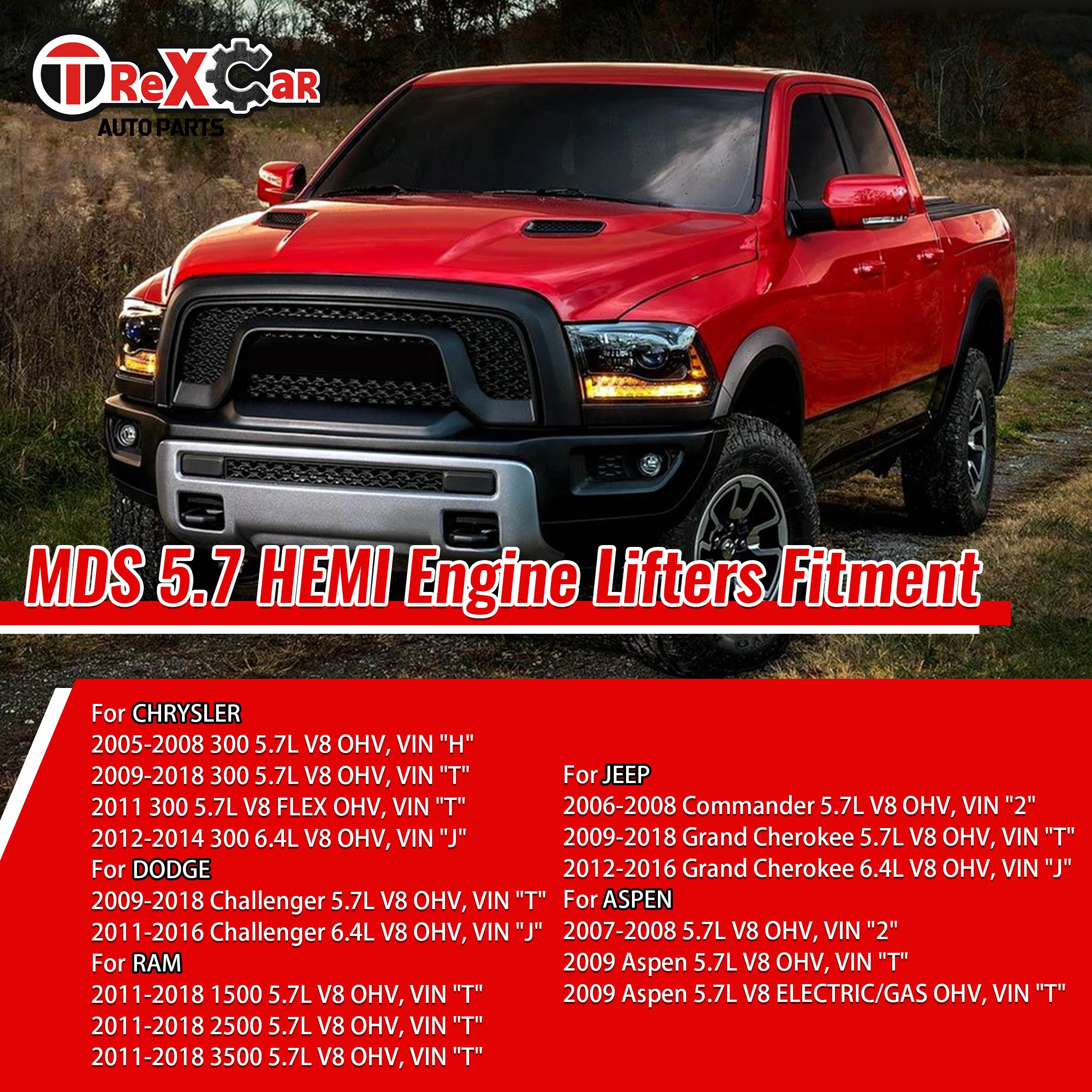 Fitment: For 2005-2008 Dodge Magnum 5.7, 2005-2021 Dodge Durango 5.7L, 2005-2021 Dodge Durango 6.4L, 2005-2021 Dodge Ram 1500 5.7L, 2005-2021 Ram 2500 5.7L, 2005-2021 Ram 3500 5.7L, 2006-2021 Dodge Charger 5.7L, 2006-2021 Dodge Charger 6.4L, 2009-2021 Dodge Challenger 5.7L, 2009-2021 Dodge Challenger 6.4L