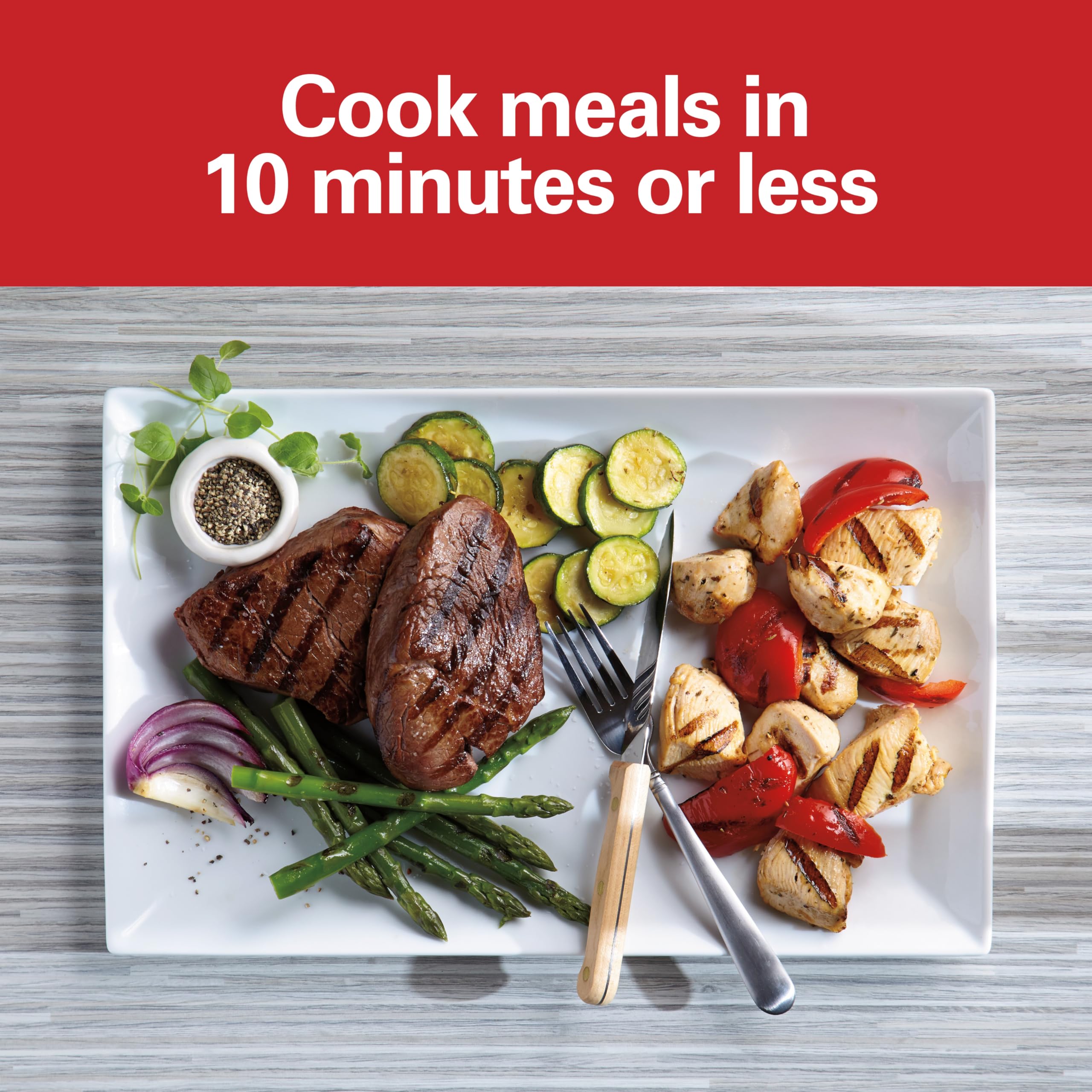 COOK MEALS IN 10 MINUTES OR LESS: With a total of 95 square inches of nonstick surface on the top and bottom grill plates, the hot sandwich maker / electric grill will cook most meals in 10 minutes or less. Both sides of food cook at the same time