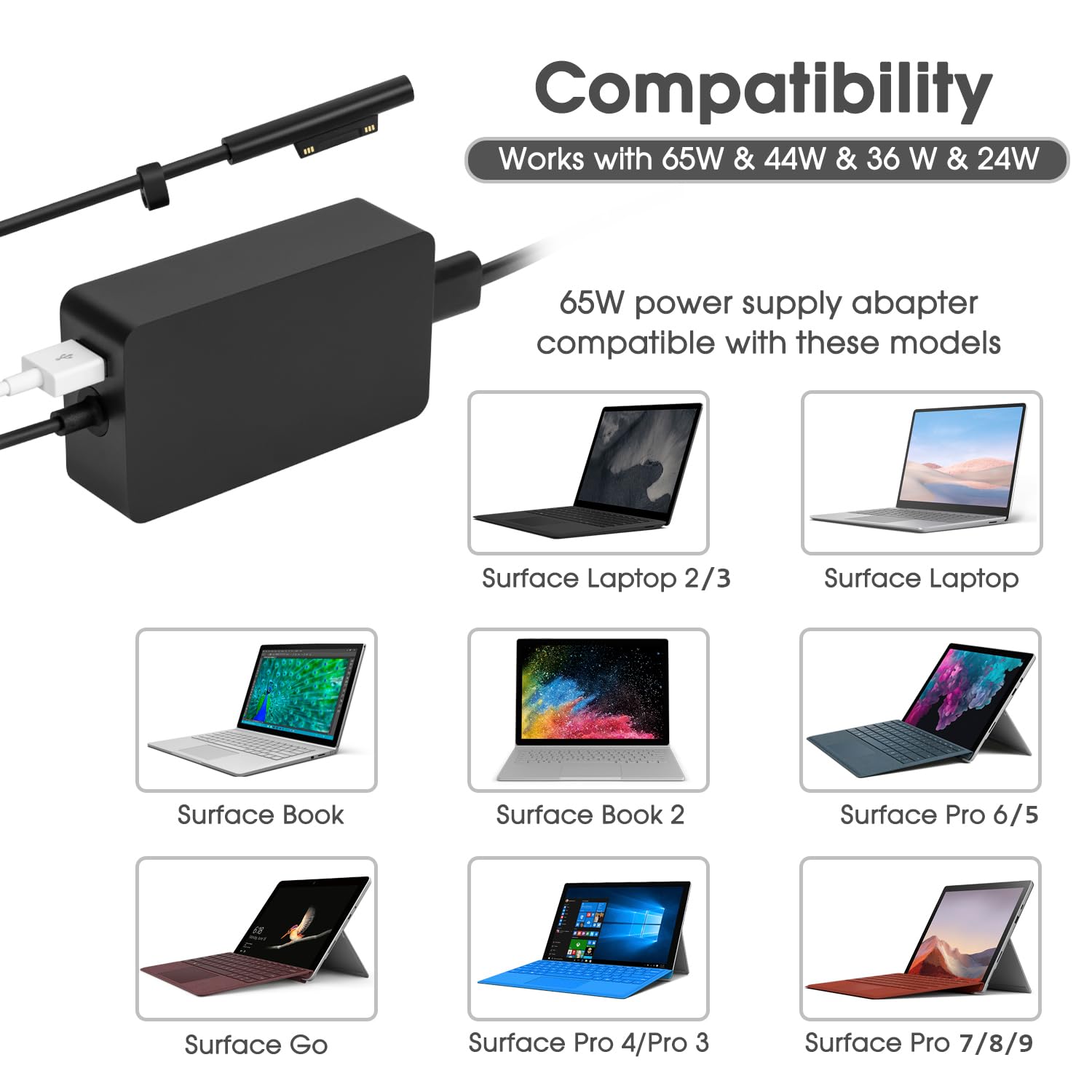 Compatible with Surface Pro 3, Surface Pro 4, Surface Pro 5, Surface Pro 6, Surface Pro 7, Surface Pro 7+, Surface Pro 8, Surface Pro 9, Surface Pro 10, Surface Pro 11,Surface Pro X; Surface Laptop 1, Surface Laptop 2, Surface Laptop 3, Surface Laptop 4, Surface Laptop 5, Surface Laptop 6; Surface Book/Book 2/Book 3; Surface Go, Surface Go 2, Surface Go 3; Surface Laptop Studio 1