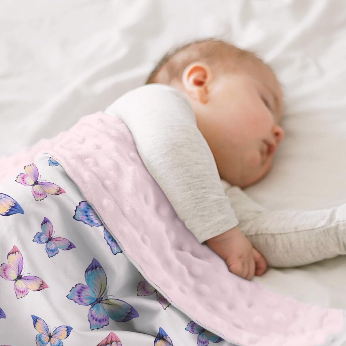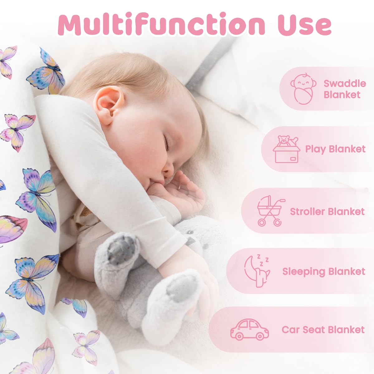 Comfortable material: the baby blanket is light, ensuring your little one stay comfortable all year round; one side features a smooth surface while the other is 3D dotted