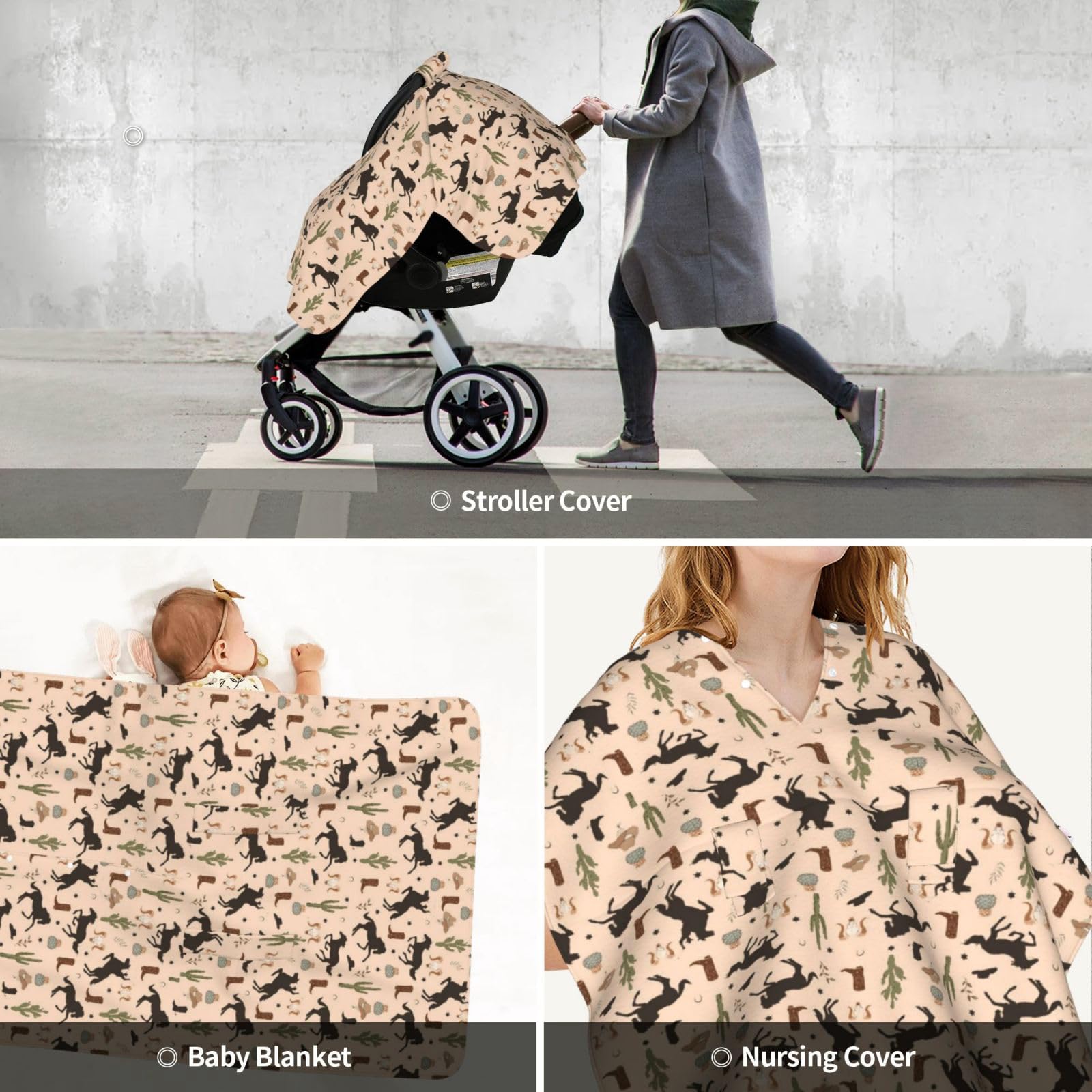 ★ Western Baby Stuff: The ultra soft plush fabric with cute pattern, we ensure that baby's mom will love this car seat canopy. It's an cute baby shower stuff, birthday, and daily stuff.