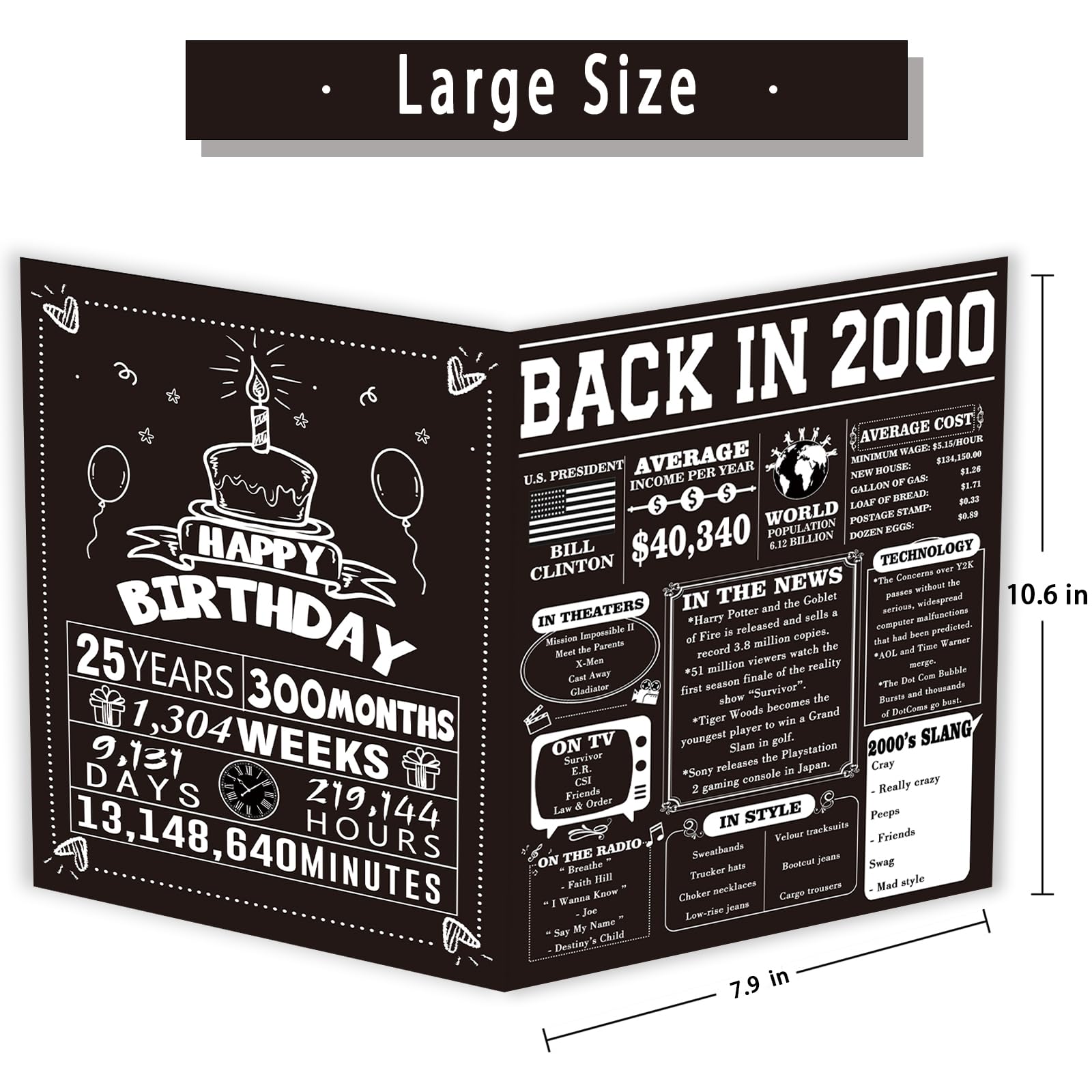 Blank Inside: The 25 year old birthday card measures 10.6 by 7.9 inches. The inside of the card is blank, you can draw or write whatever you want on it to express your ideas.