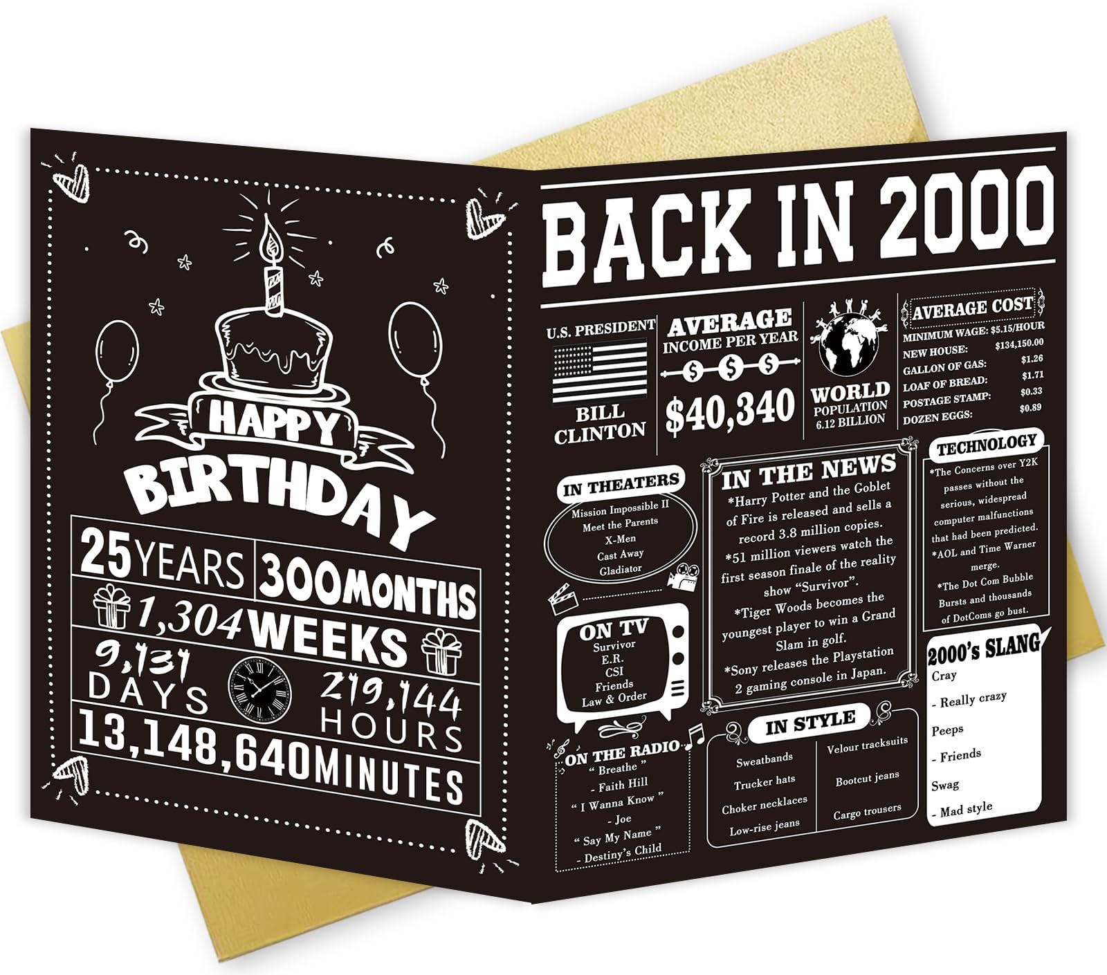25 Year Old Birthday Gift for Men: 25 Year Old birthday card contains interesting news, popular TV shows, which would be a cool gift for a 25 year old women/men.