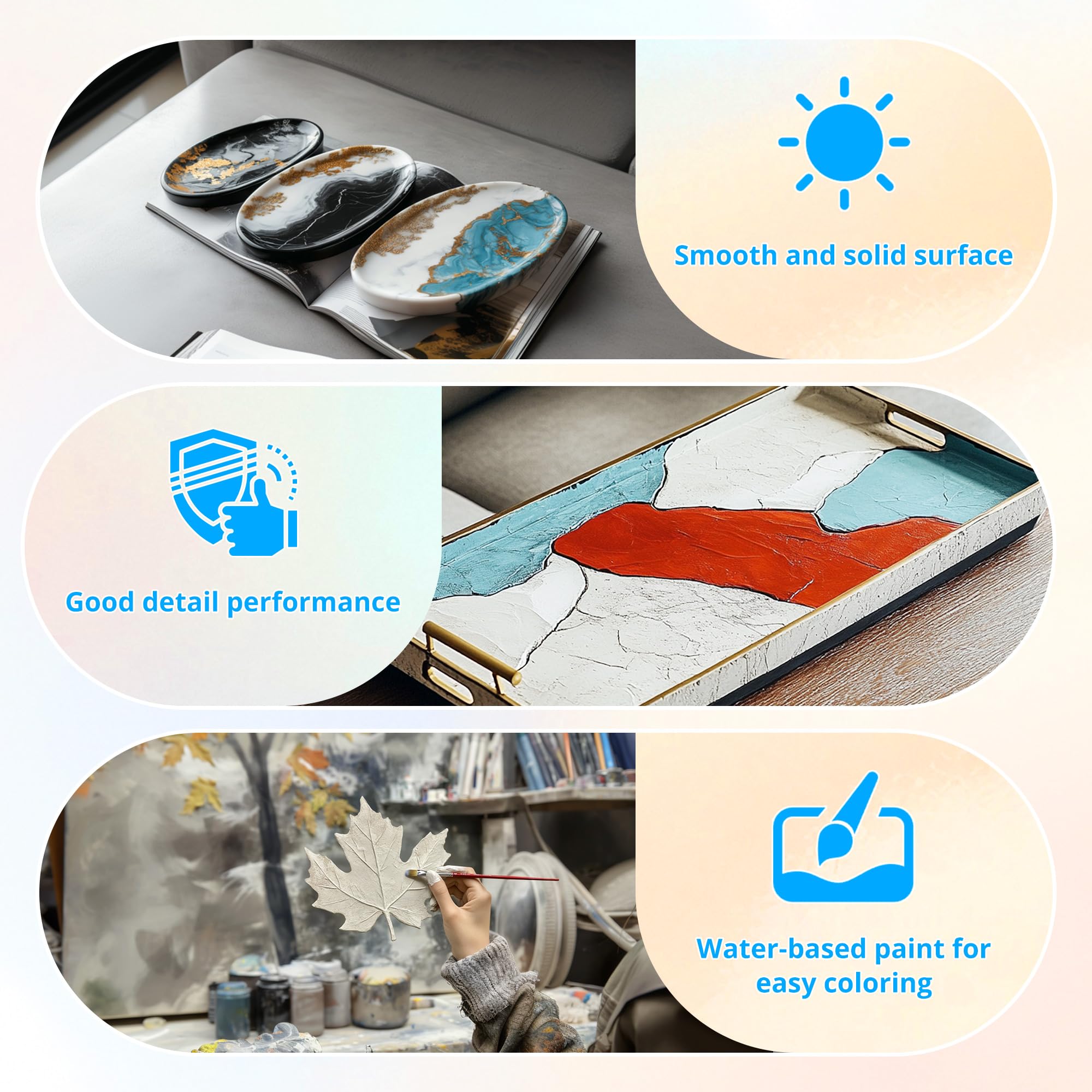 【Customizable & Colorable】 The powder dries to a crisp white, making it the perfect canvas for creativity. Add acrylic paint and gold after curing to create unique and works of art.
