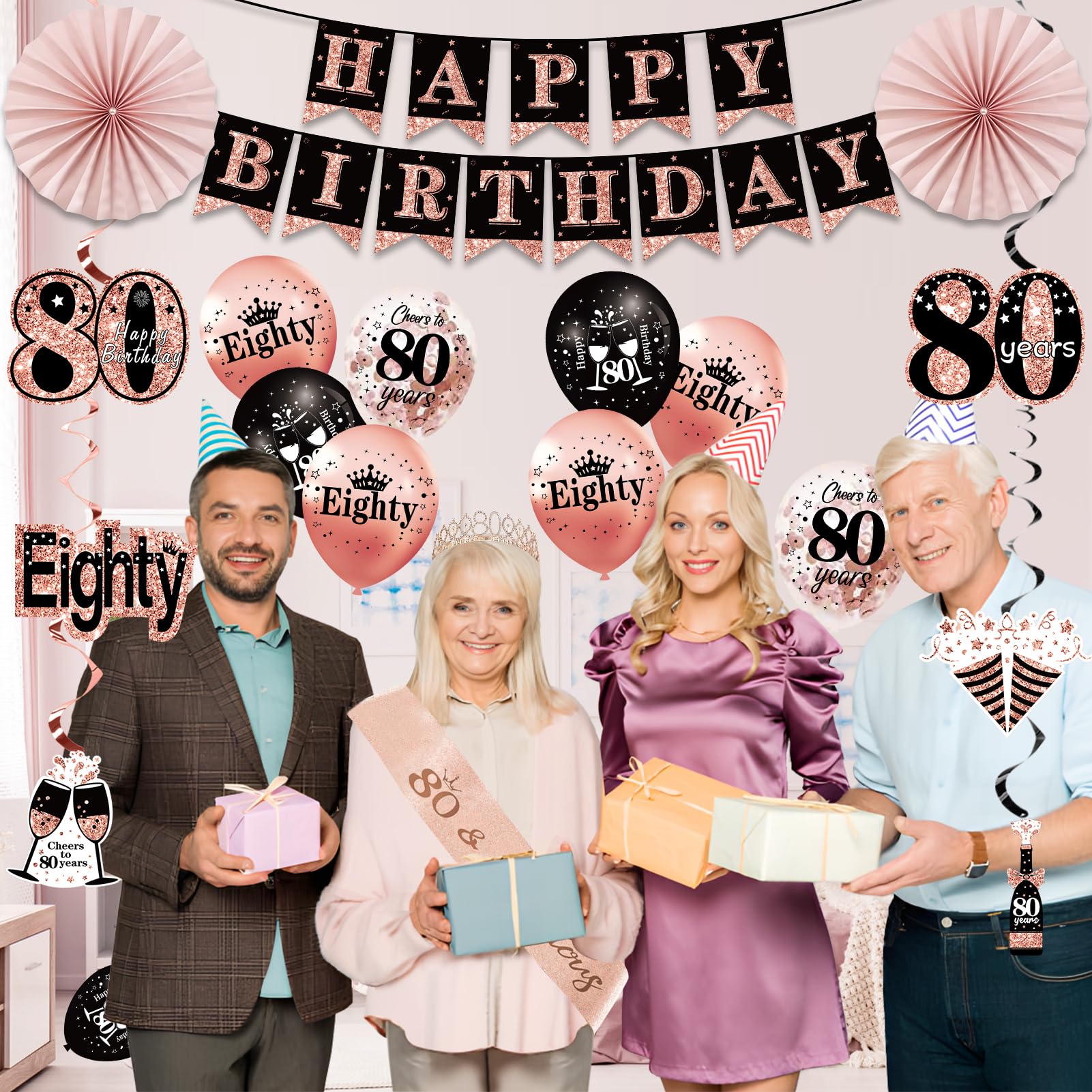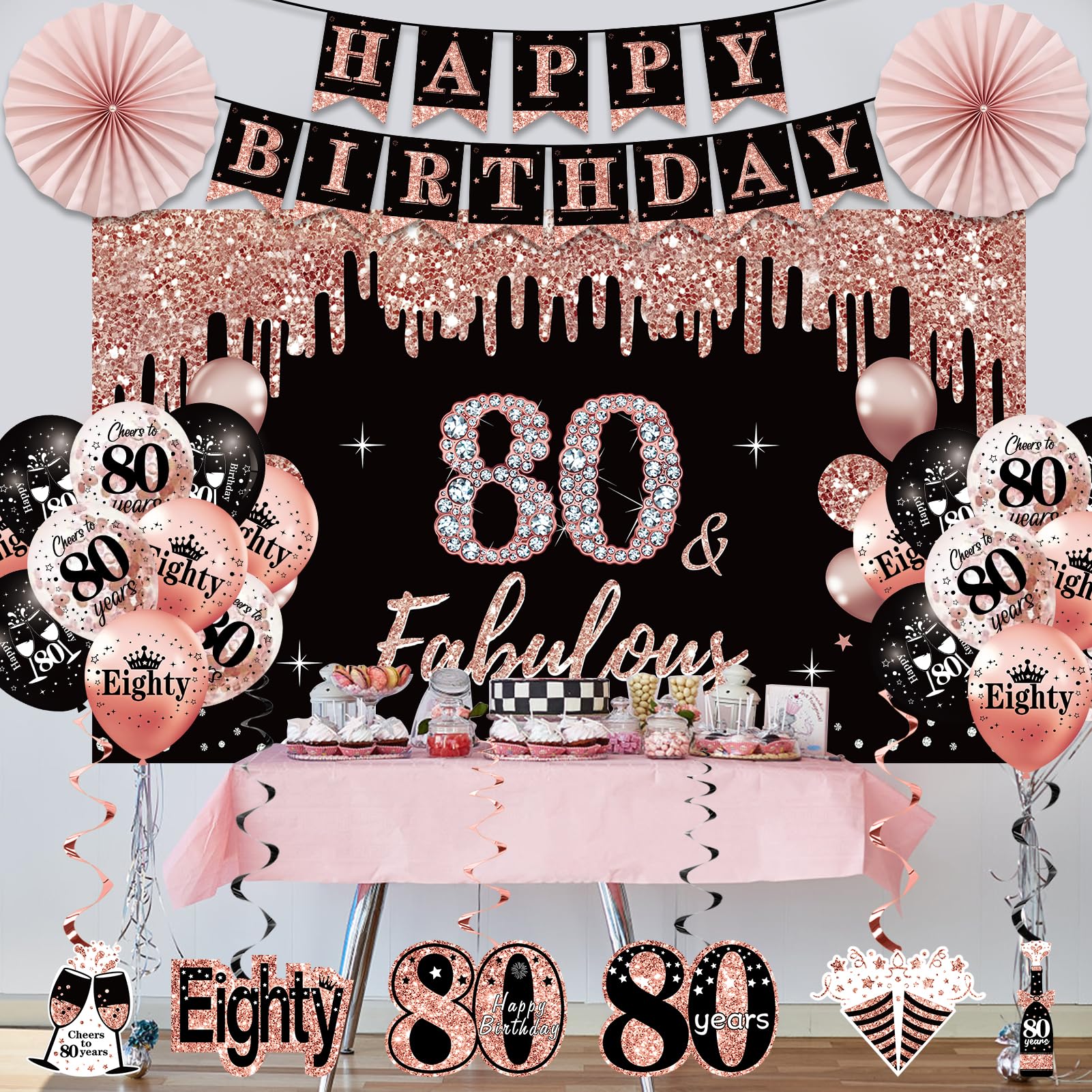 Rose gold 80th birthday decorations: Create a warm and elegant atmosphere with our womens 80th birthday party decorations. Cheers to 80 years