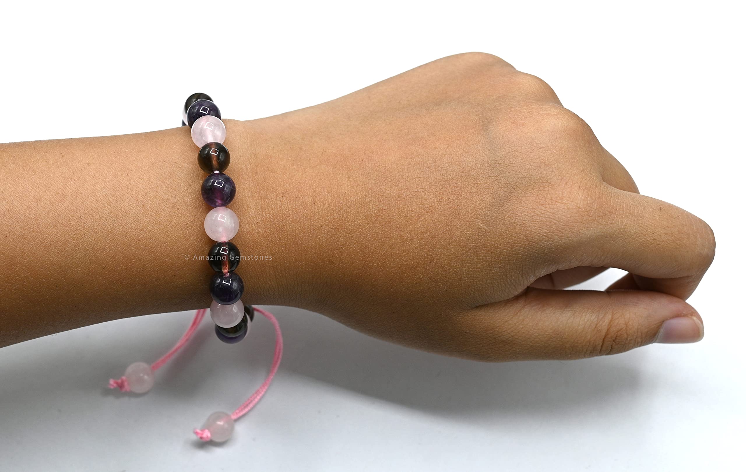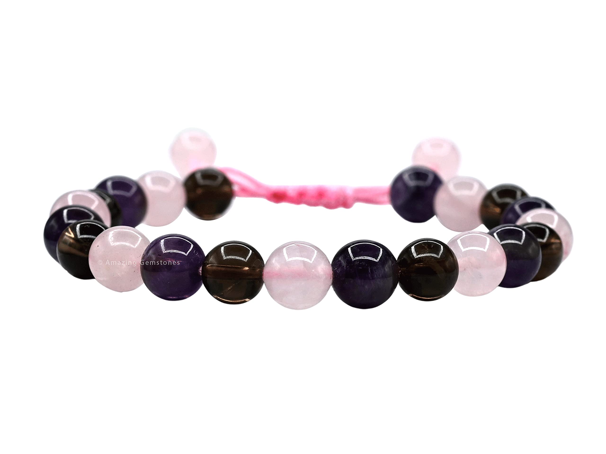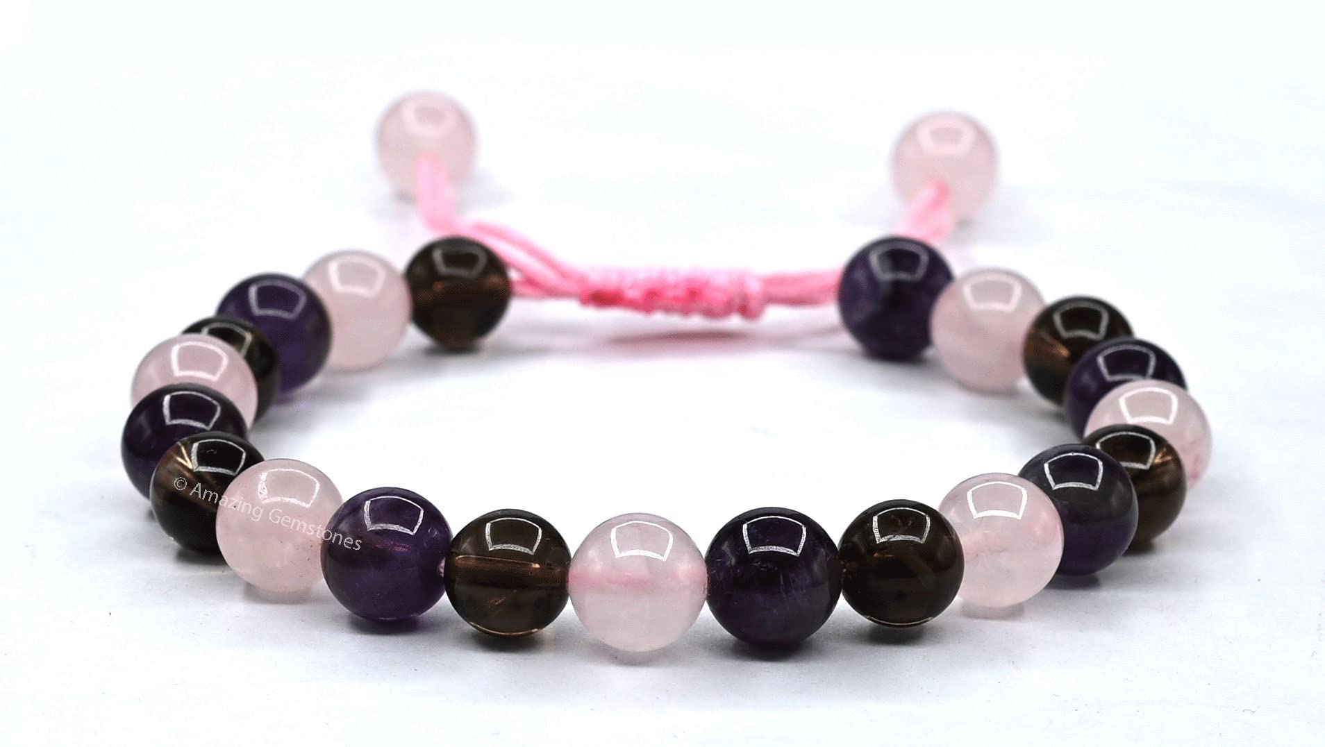 Bracelet for Sleep contains real crystal beads Rose Quartz, Smoky Quartz and Amethyst. Rose Quartz calms your emotions, Smoky Quartz wards off stress & Amethyst calms your mind.