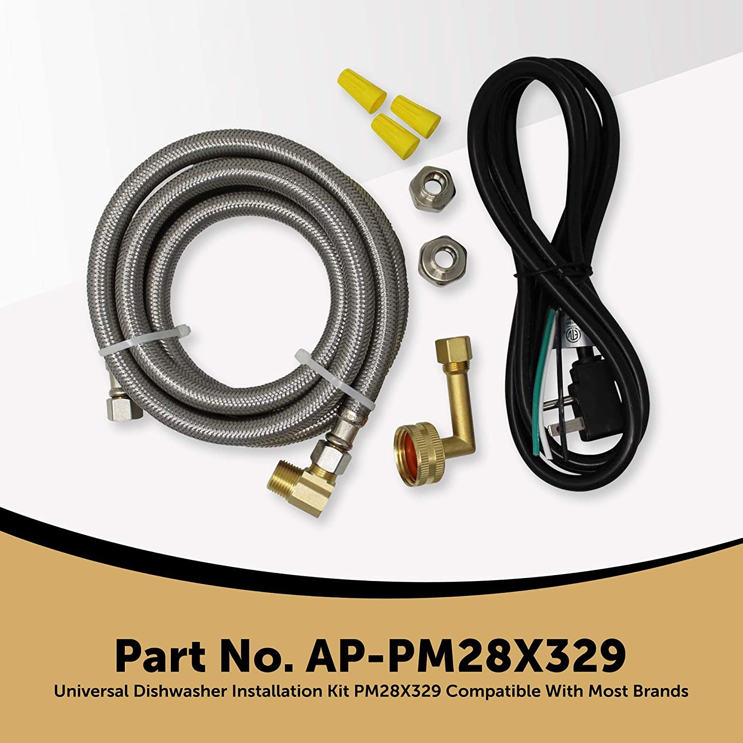 COMPLETE INSTALLATION KIT - Our Appliance Pros PM28X329 dishwasher sink drain kit includes 1 x universal 3-wire power cord and 1 x 6-foot connector. It's an all-in-one dishwasher kitchen drain kit to install a new unit or replace an old one.