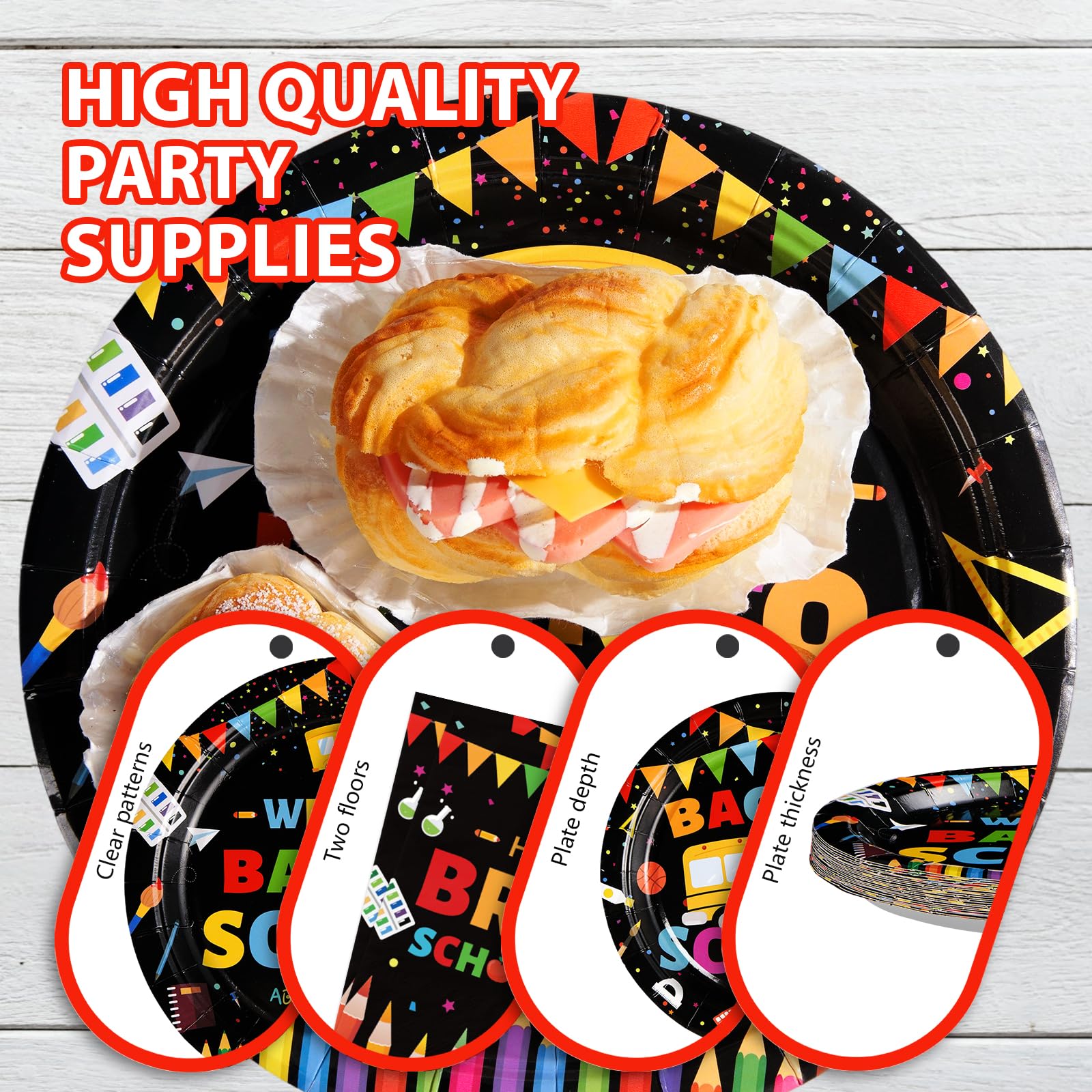 Durable & Functional: Designed for convenience, the 9-inch welcome back to school plates accommodate hearty meals like pizza or sandwiches, while the 7-inch plates are ideal for snacks or desserts. Made from sturdy paper material, these plates resist sagging and leaks, ensuring mess-free serving. The matching 6.5-inch napkins and 6.5-inch plastic forks (24 each) complete the setup, offering a cohesive look for school cafeterias, teacher lounges, or home celebrations