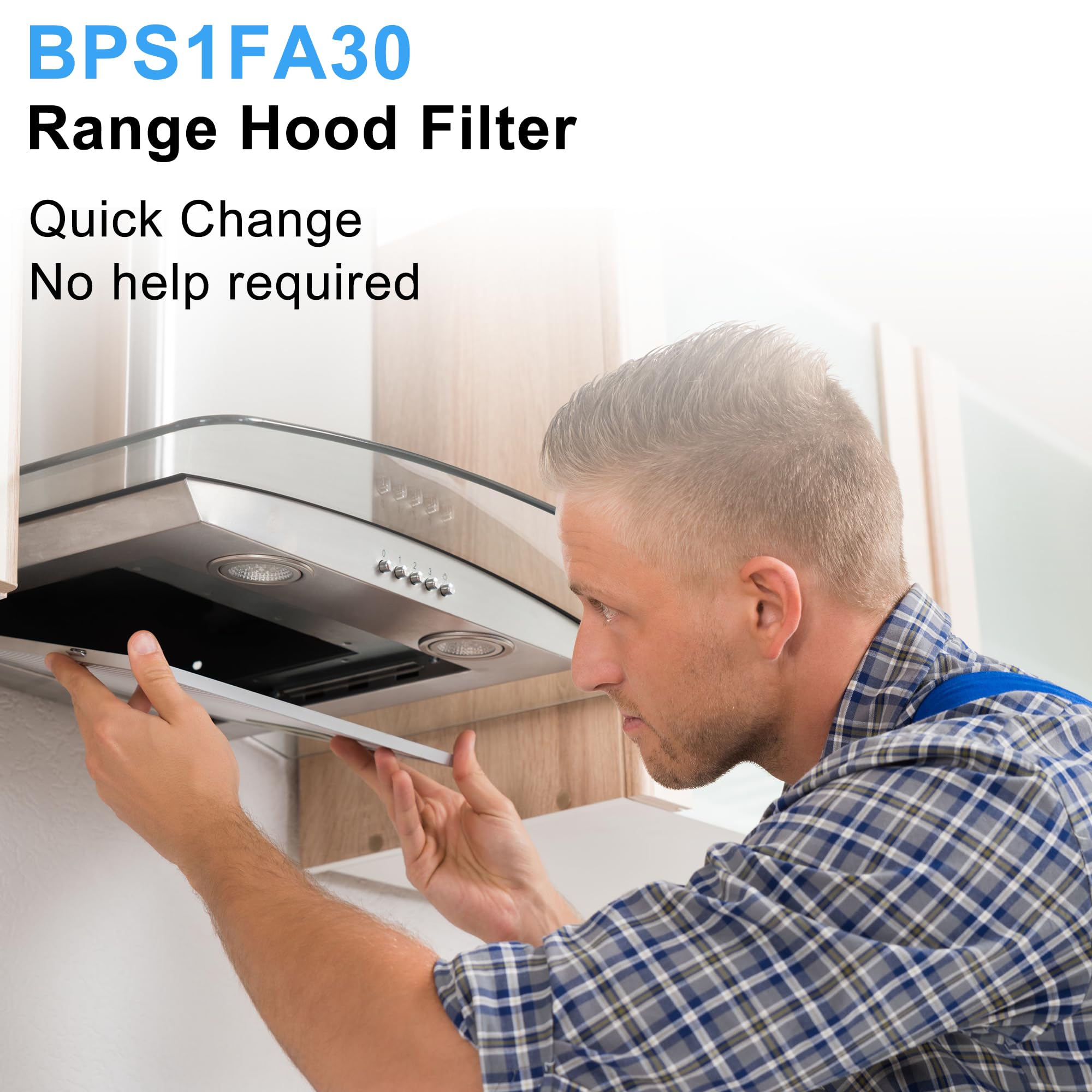 FILTER SIZE: The BPS1FA30 range hood filters measure 11-3/4" x 14-1/4" x 3/8" - each package includes 2 packs of BPS1FA30 aluminum range hood filters
