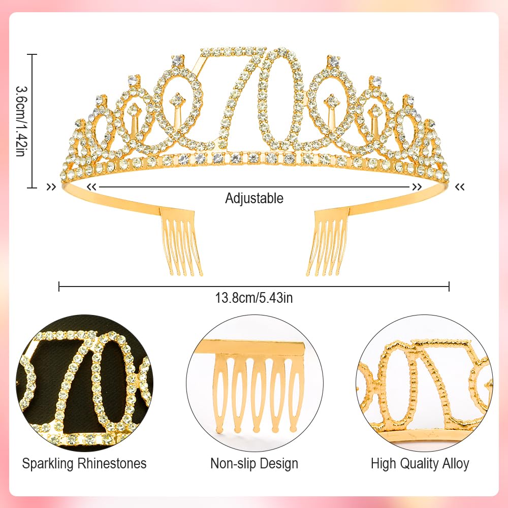 šBirthday Crown for Girls: 70th birthday crown and sash for women gold, 70th birthday tiara, 70th birthday tiara and sash gold, 70th tiara for women, 70th birthday headband for women, happy 70th birthday headband, happy 70th birthday sash, 70th birthday decorations, 70th birthday gifts for women, 70th crown and sash, happy birthday crown thoughtful unique gifts for colleague, educator, teacher, nurse, doctor, godmother. Perfect for special birthday girl party.