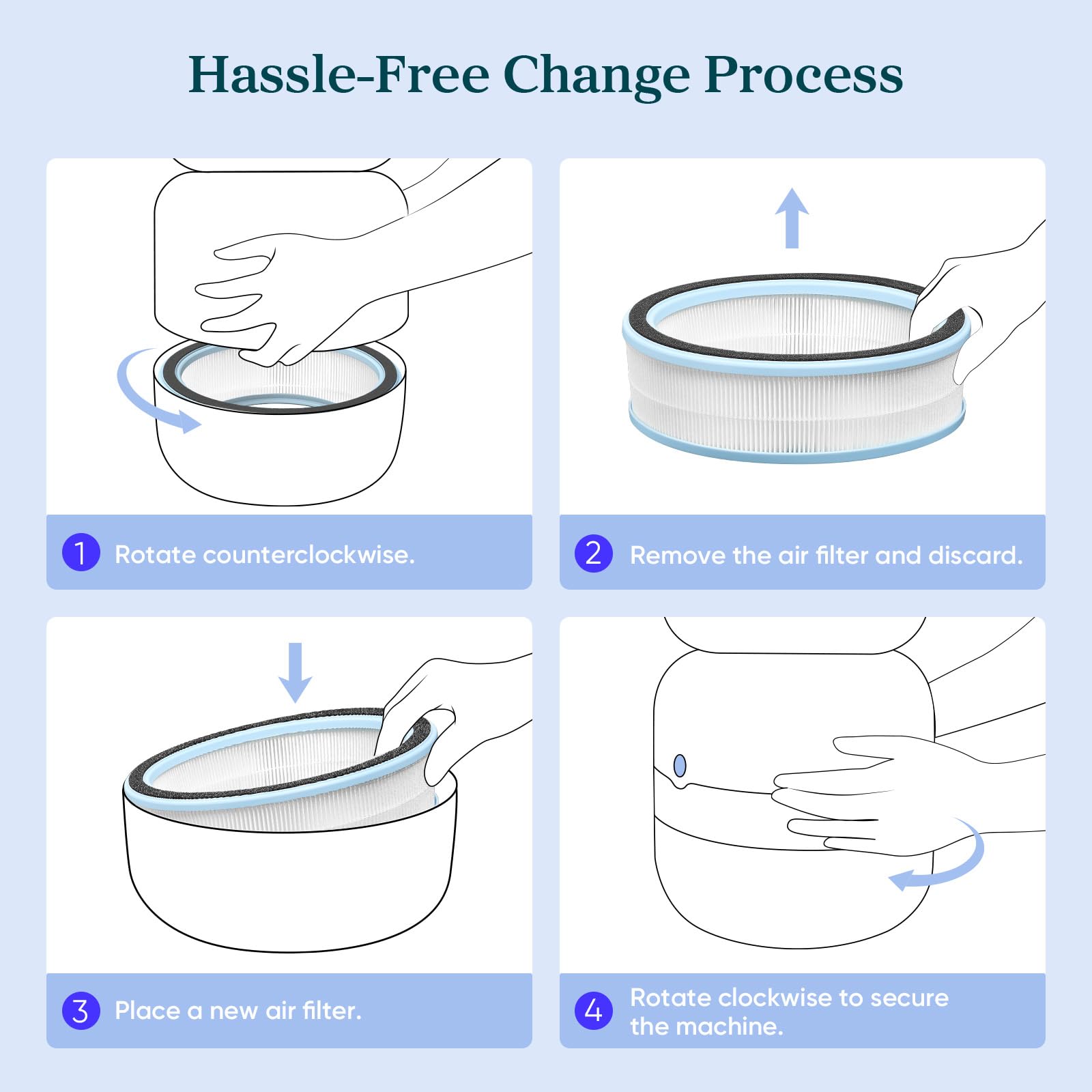 𝗙𝗶𝗹𝘁𝗲𝗿 𝗥𝗲𝗺𝗶𝗻𝗱𝗲𝗿: The VeSync App provides real-time updates on filter life and will remind you when it's time for a replacement, ensuring hassle-free maintenance for busy parents