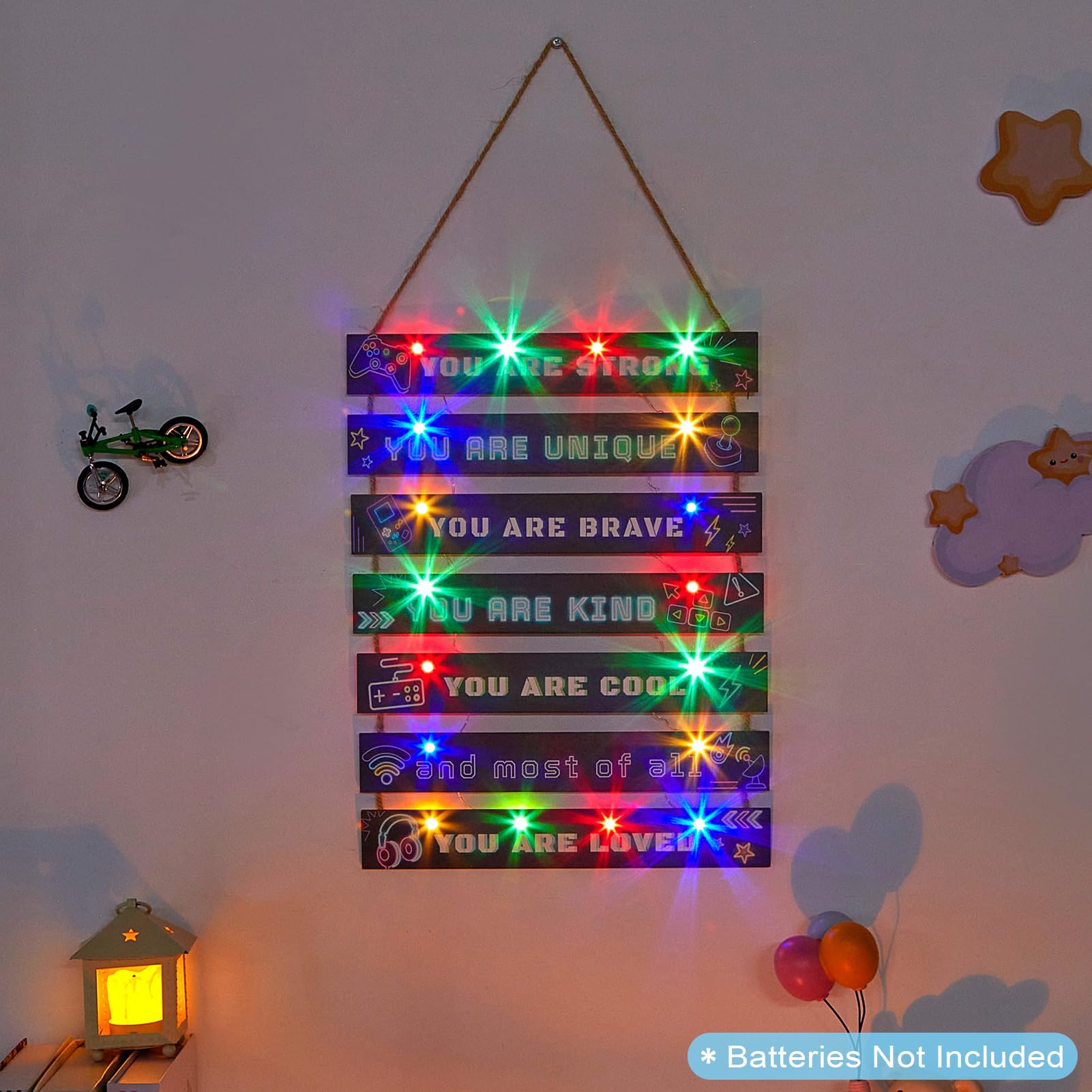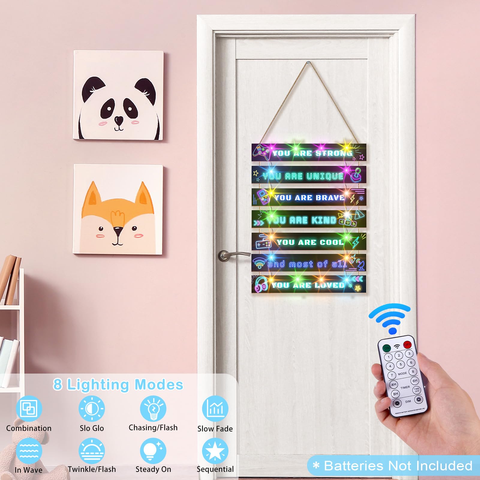 Package: The play room decor for kids package includeds 1 pcs girls room decor board, 1 pcs LED light with empty battery box (not including batteries), 1 pcs remote control (not including batteries), both do not including batteries, need to be purchased by customers themselves