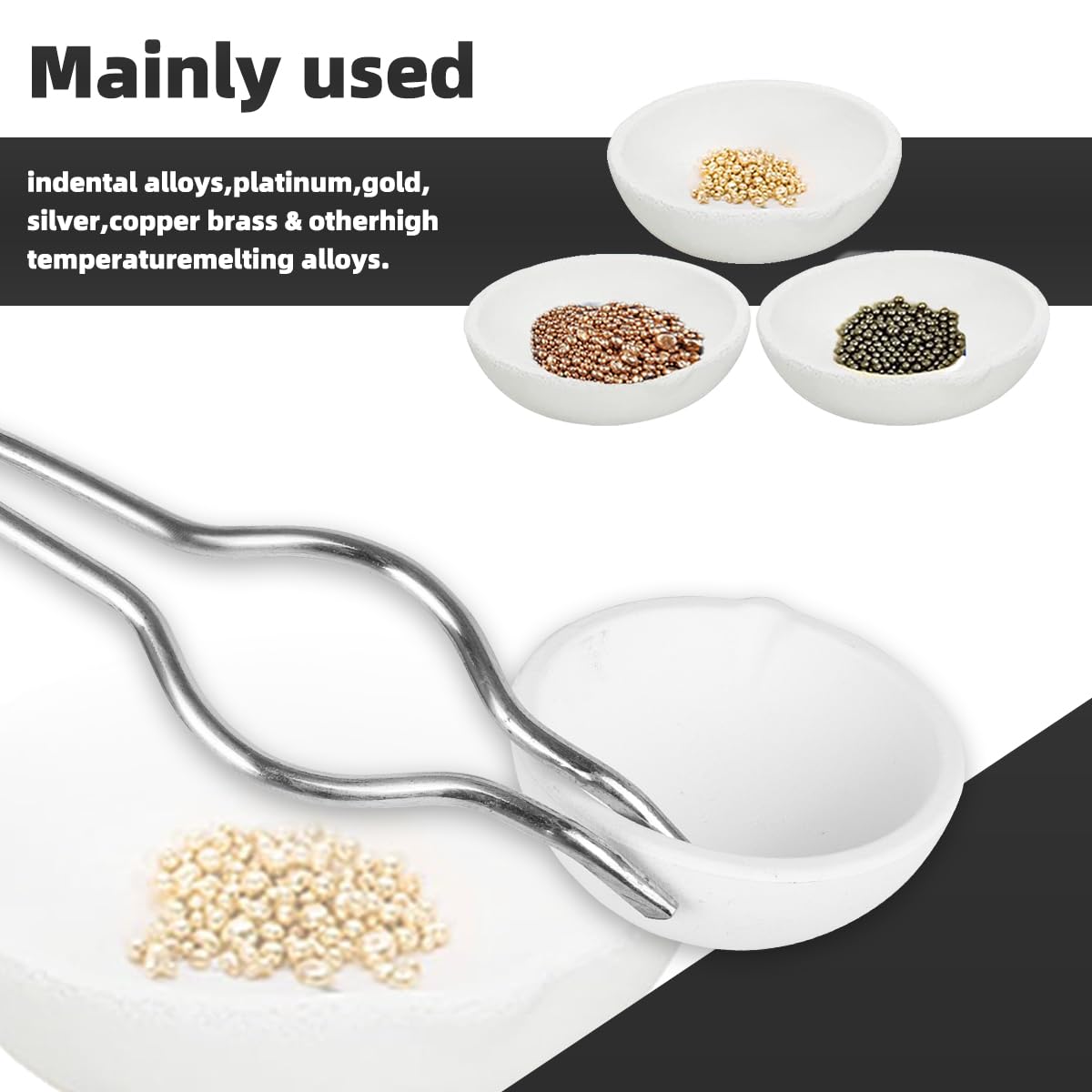Includes:3 Crucible Dishes(100g250g500g) & HEAVY DUTY Stainless Steel 11.5" Inch Crucible tongs