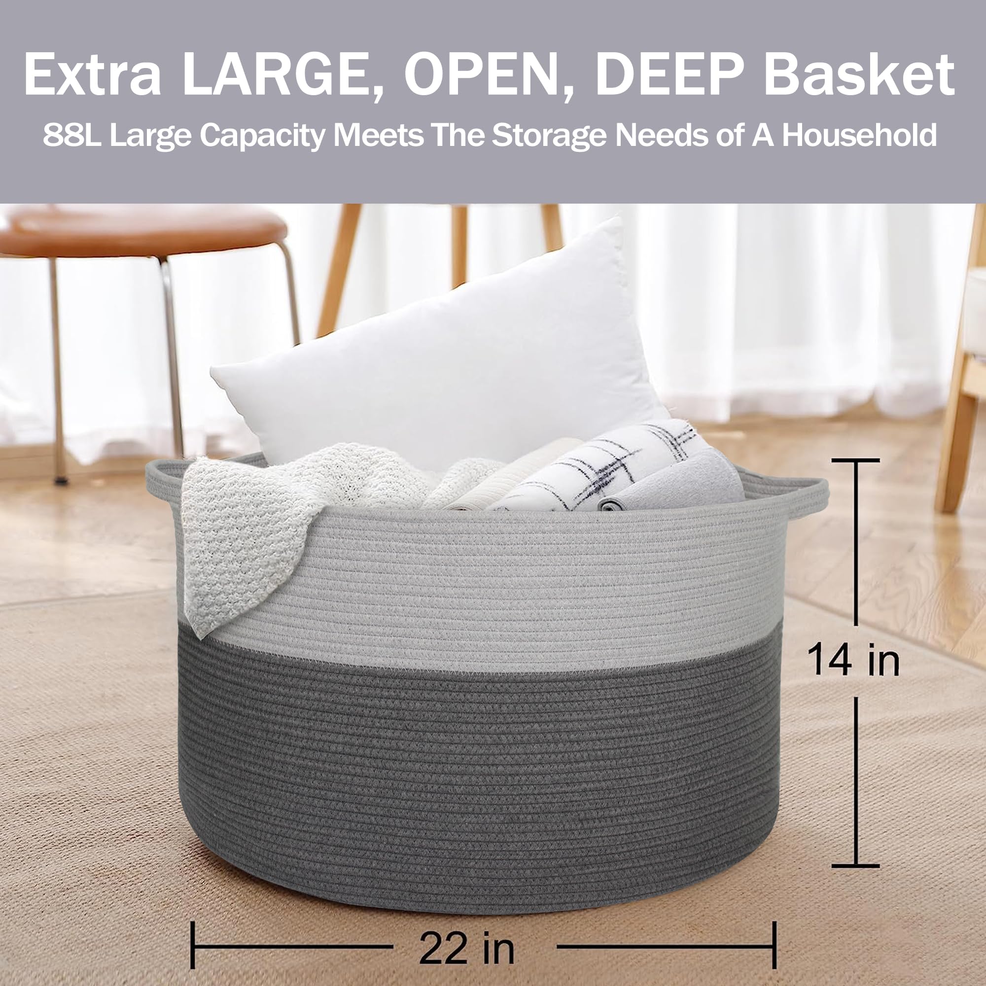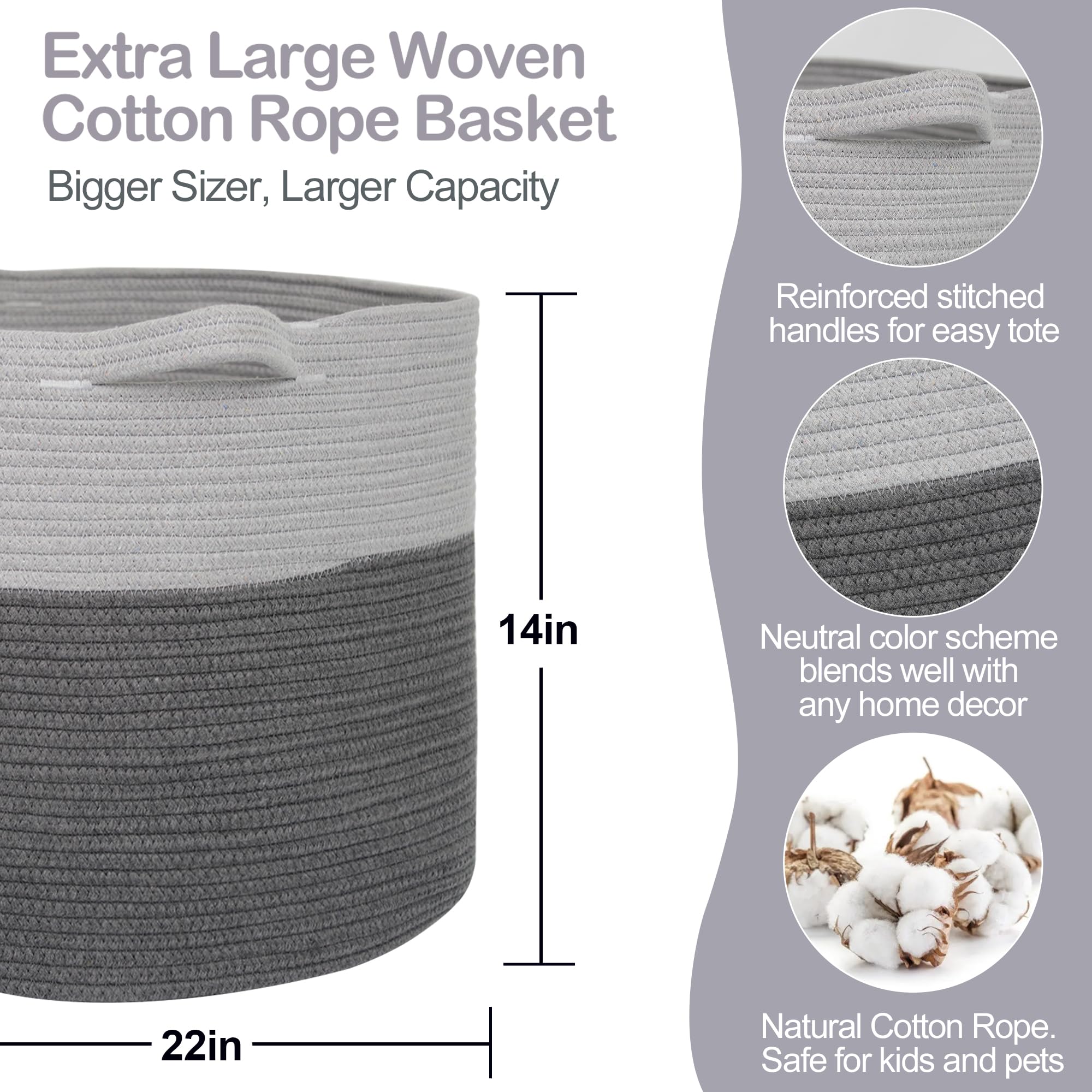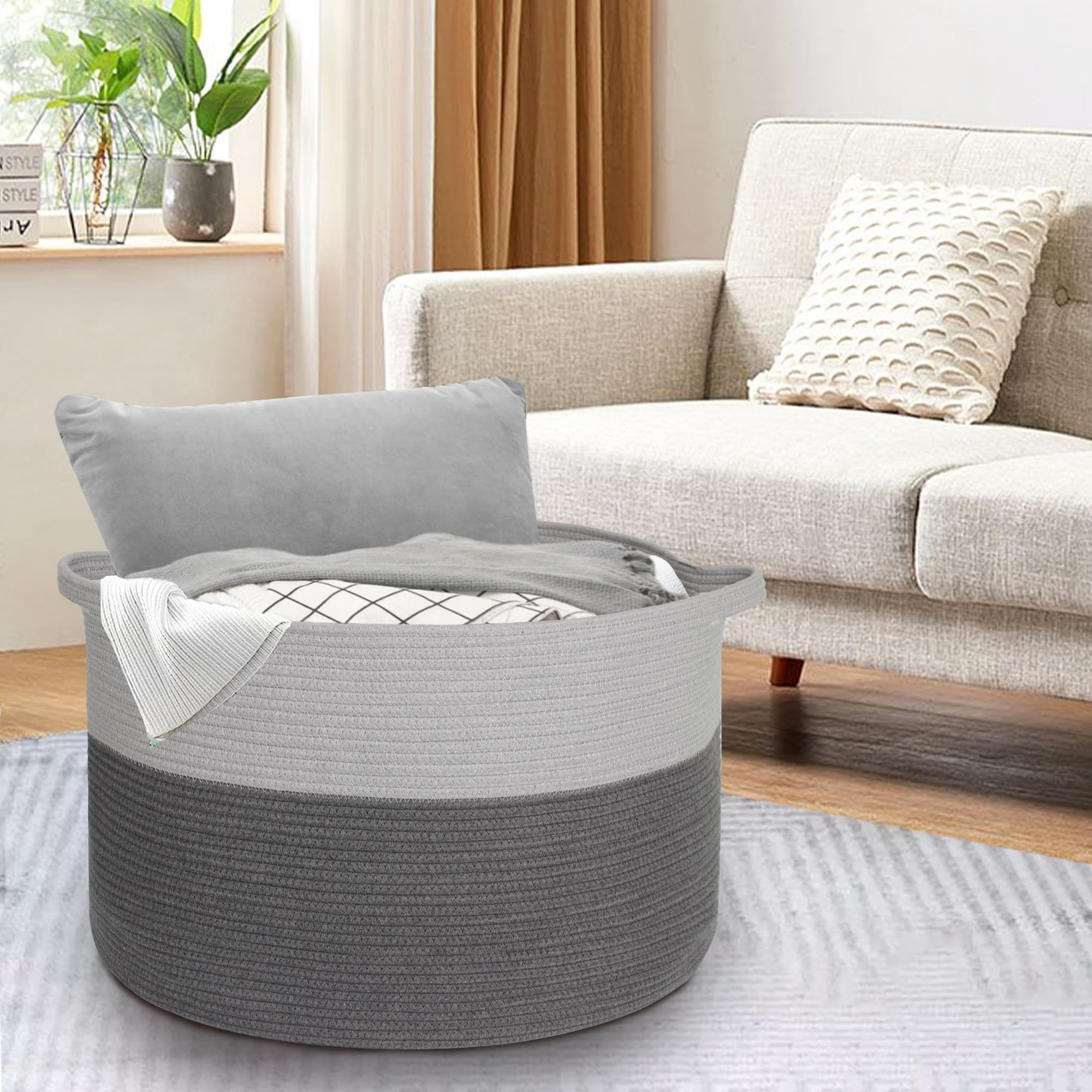 Durable Cotton Rope Living Room Storage: The XXXL laundry organization storage basket is made of natural cotton rope. Sturdy and durable cotton rope storage baskets can withstand weight and regular use without wear and tear. Rope material is soft and safe for baby. Breathable open top can make the fresh air circulate through the basket can fully dry clothes of daily moisture.