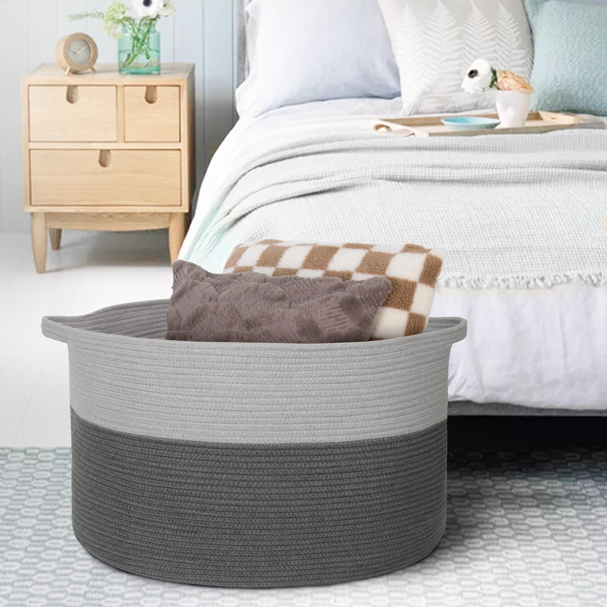 Versatile Use Baskets for Organizing: A giant storage organizer for storing tons of cozy blankets and extra pillows in the living room, Toys in kids room and nursery, Beddings in the bedroom and a towels in the bathroom. A cute laundry basket to fit dirty or clean clothes. Keeping these kinds of essentials tidy and easily accessible.