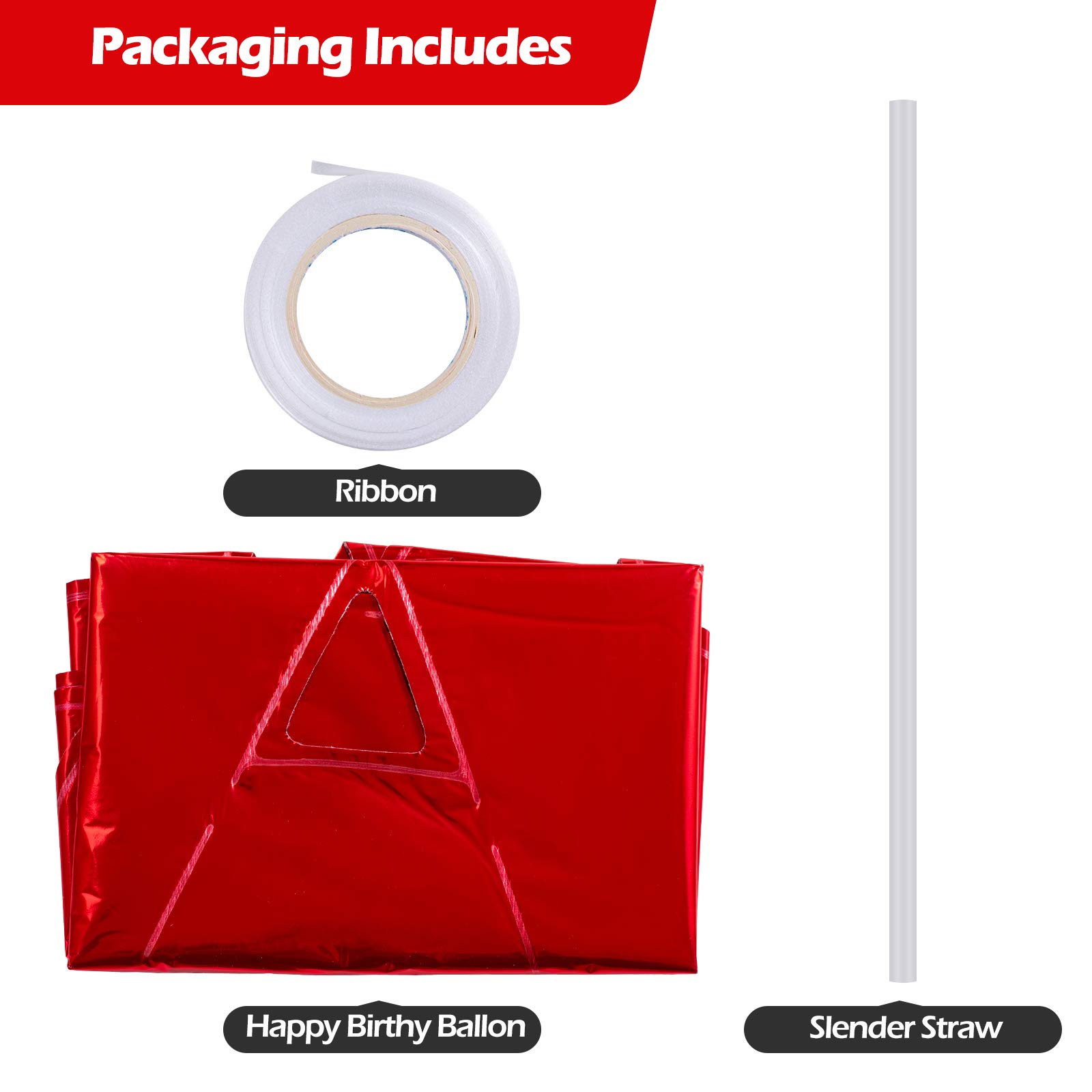 PACKAGE INCLUDES: A total of 13 "Happy Birthday" letter balloons, along with 1 straw and 1 ribbon. Each letter balloon measures approximately 16 inches.ecial Occasions