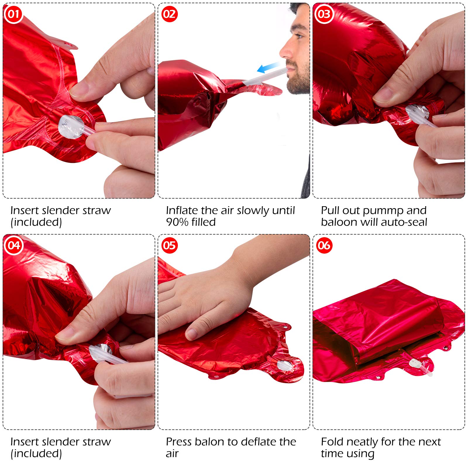 MATERIAL: Crafted from high-quality aluminum foil, these balloons are made from eco-friendly materials. They are safe to use and feature self-sealing technology, allowing the balloons to stay inflated for nearly one week without leaking or losing air.