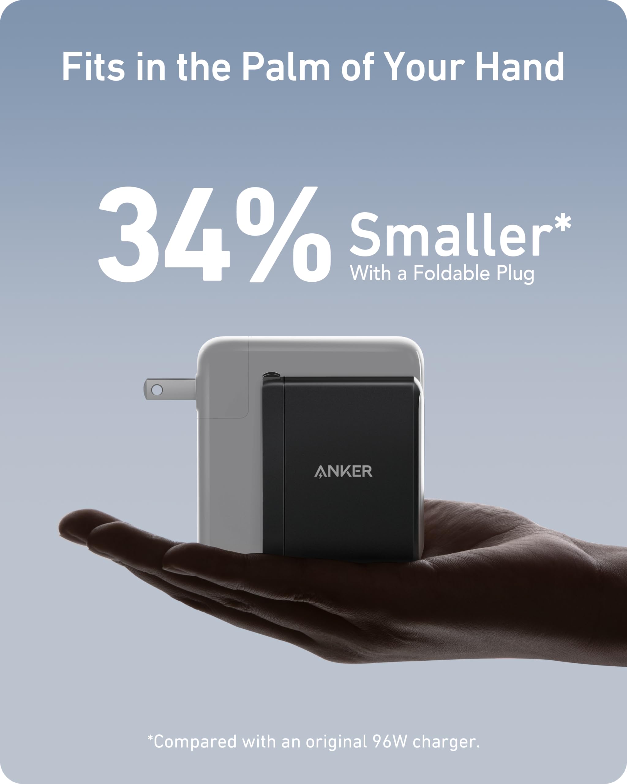 Powered by GaN II Technology: With a 100% increase in operating frequency, an innovative stacked design, and an upgraded circuit board structure, GaN II technology makes our latest charger smaller without sacrificing a drop of power.