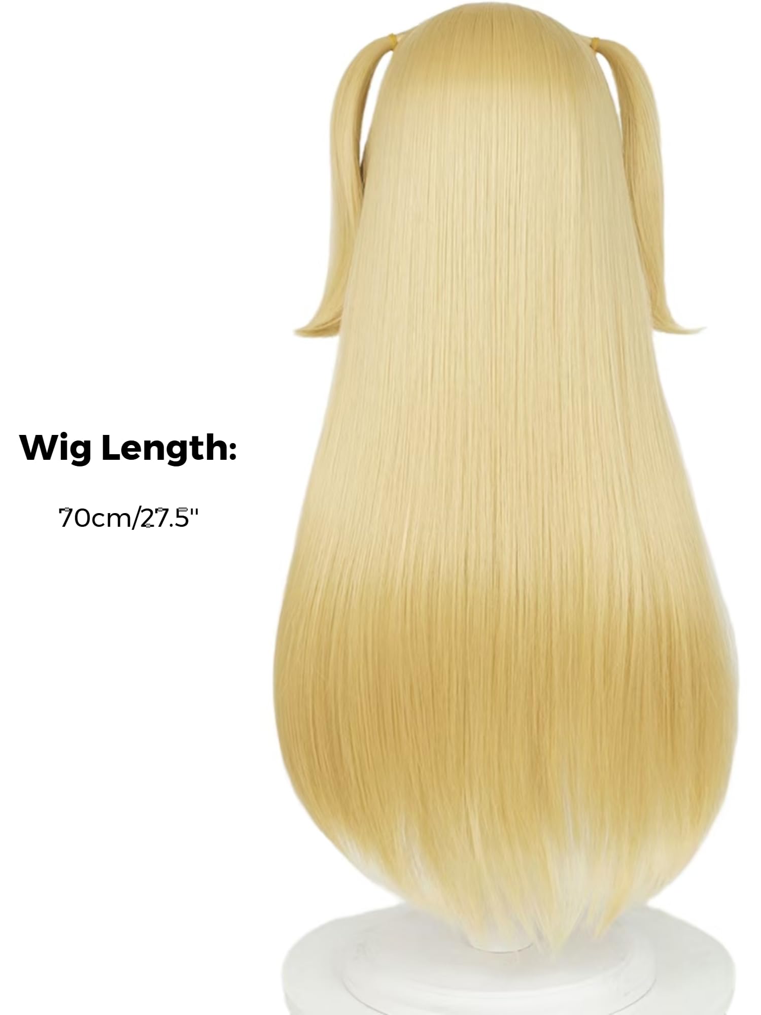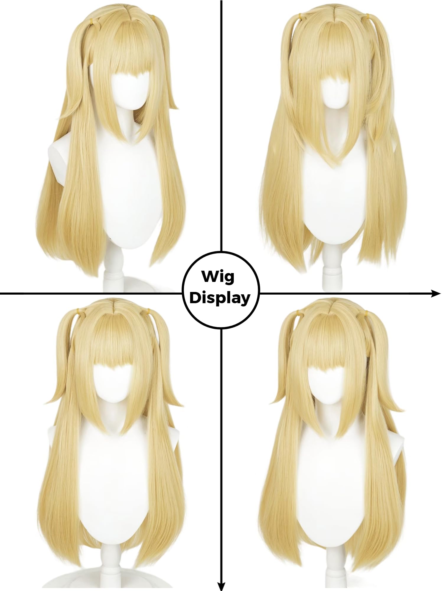 Anime-Accurate Design: Faithfully replicates MisaAmane’s iconic blonde hair with soft waves, blunt bangs, and classic twin tails for instant Gothic Lolita charm. Wig details: length: 27.5''/70cm, weight: 15.8oz/0.45kg.
