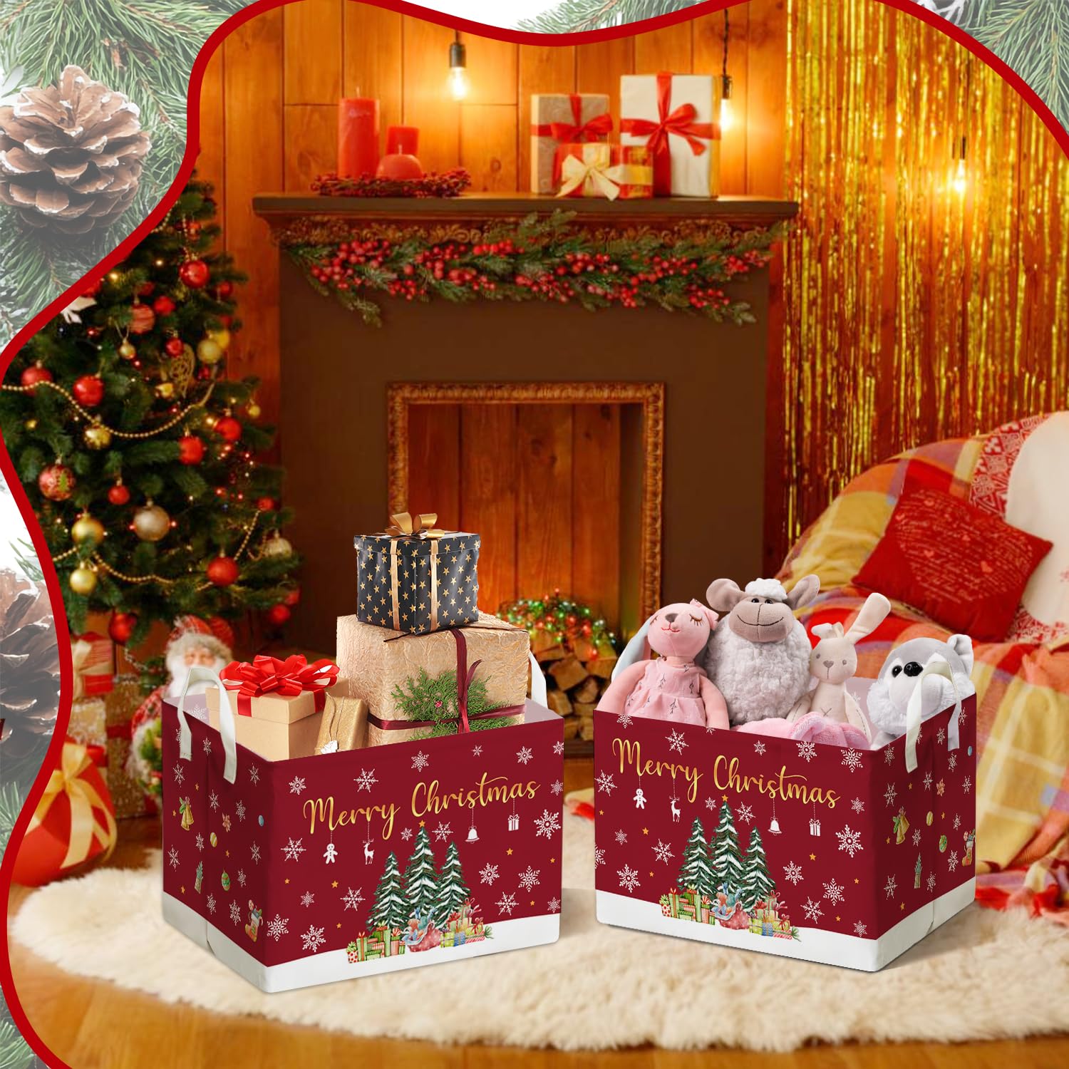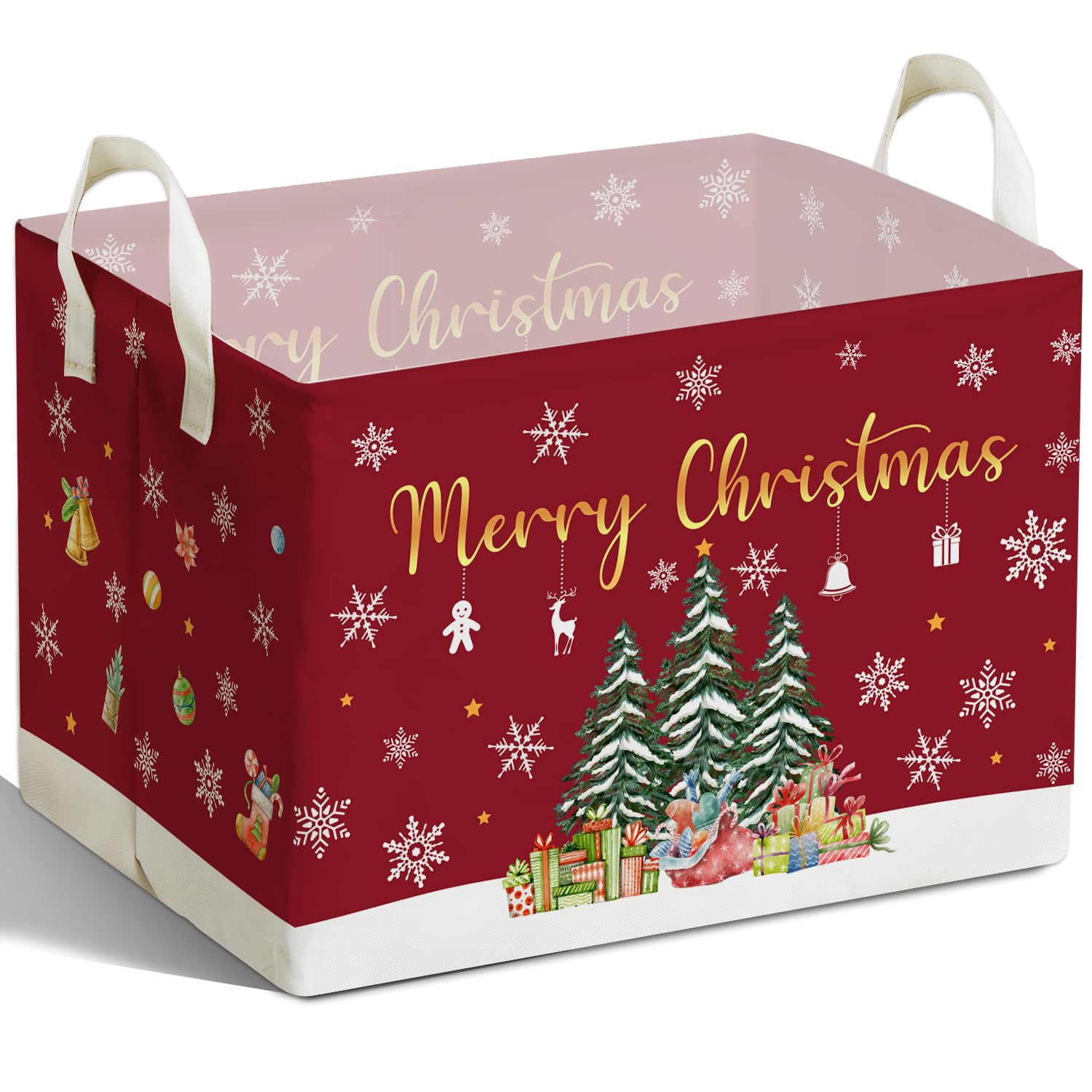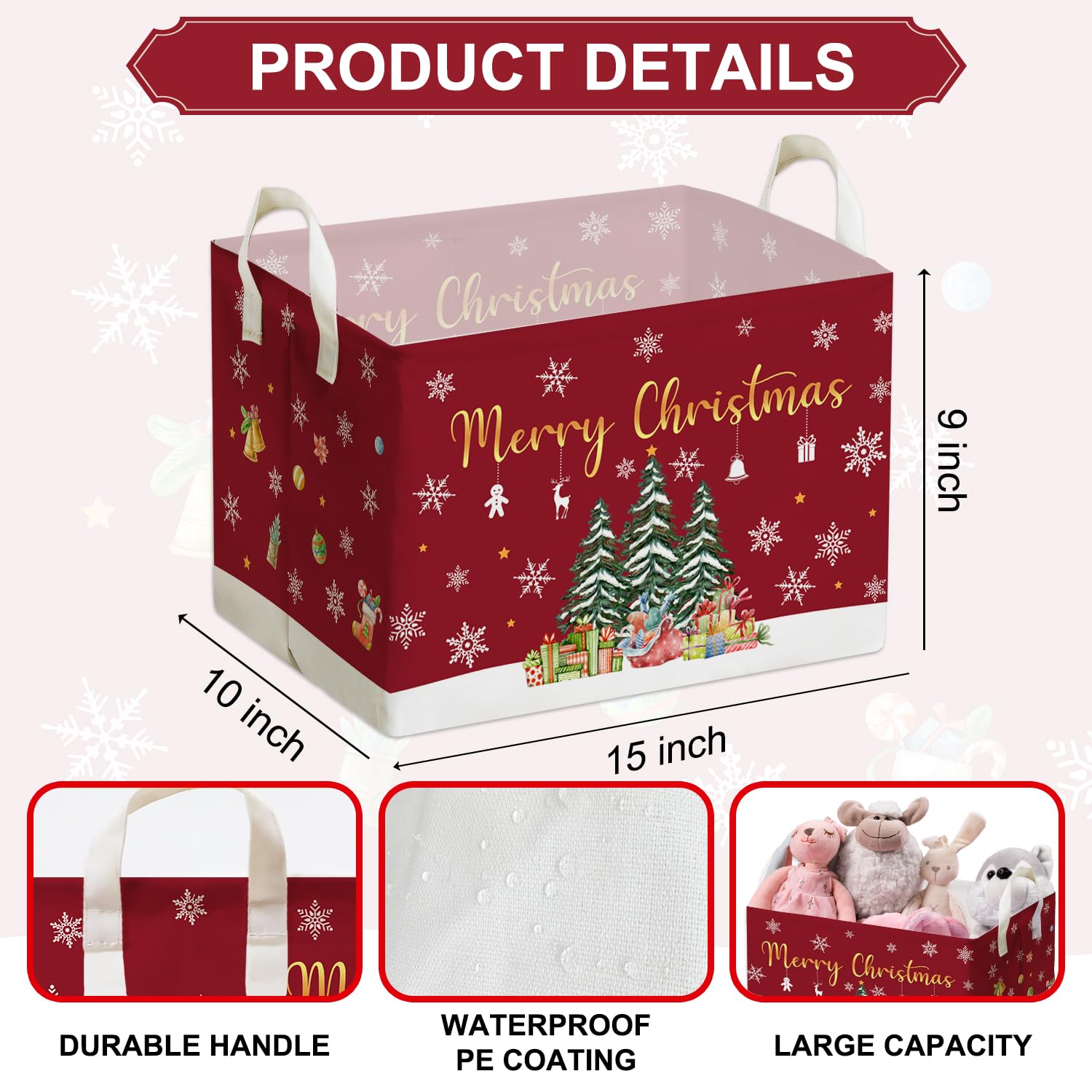 Spacious Size: 15 x 10 x 9 inches, spacious storage space for toys, clothes, books, blankets and seasonal decorations, the perfect size to keep your home organized during the Christmas holidays. Equipped with reinforced side handles for easy carrying, it can be folded for storage when not in use to save space. Convenient for home organization or travel.