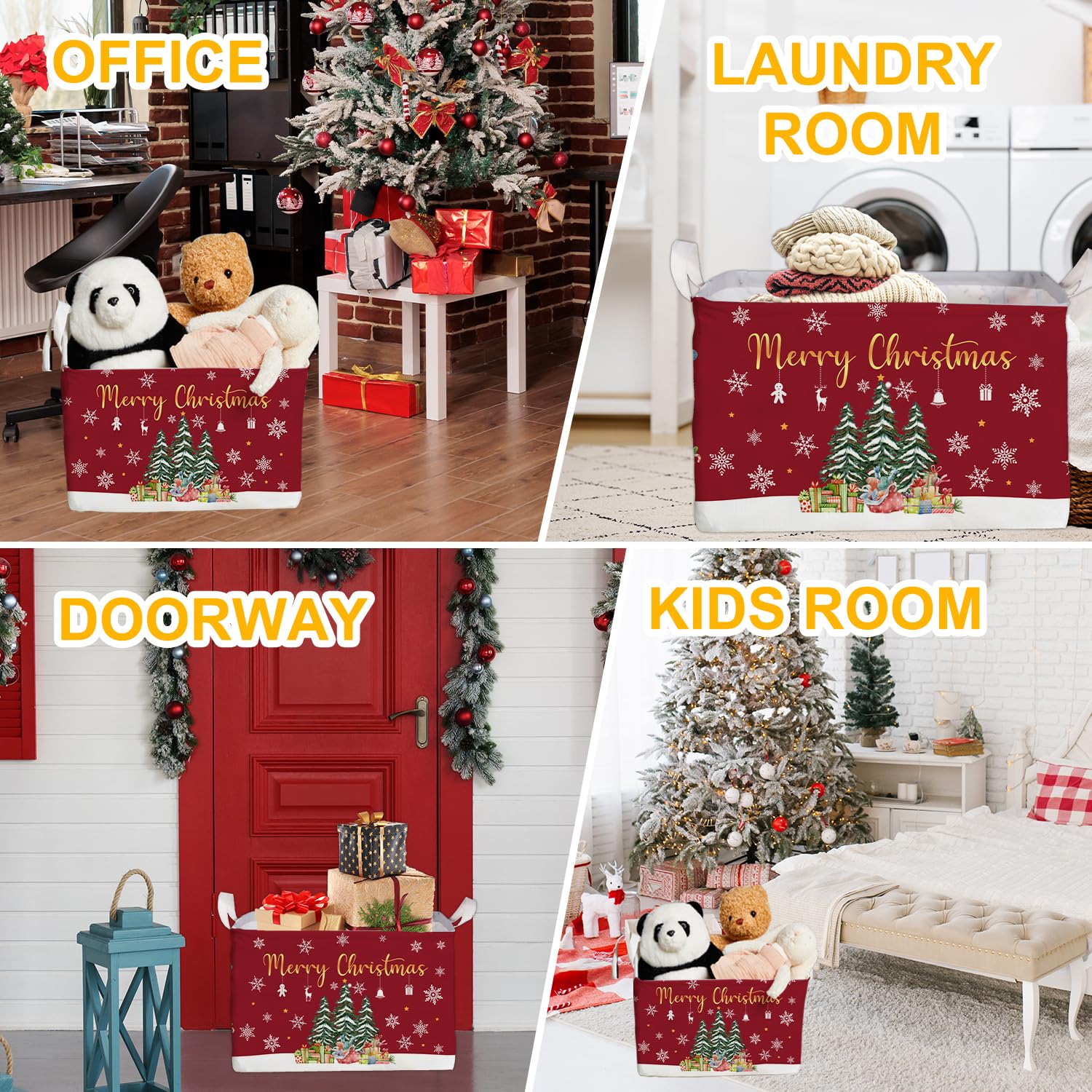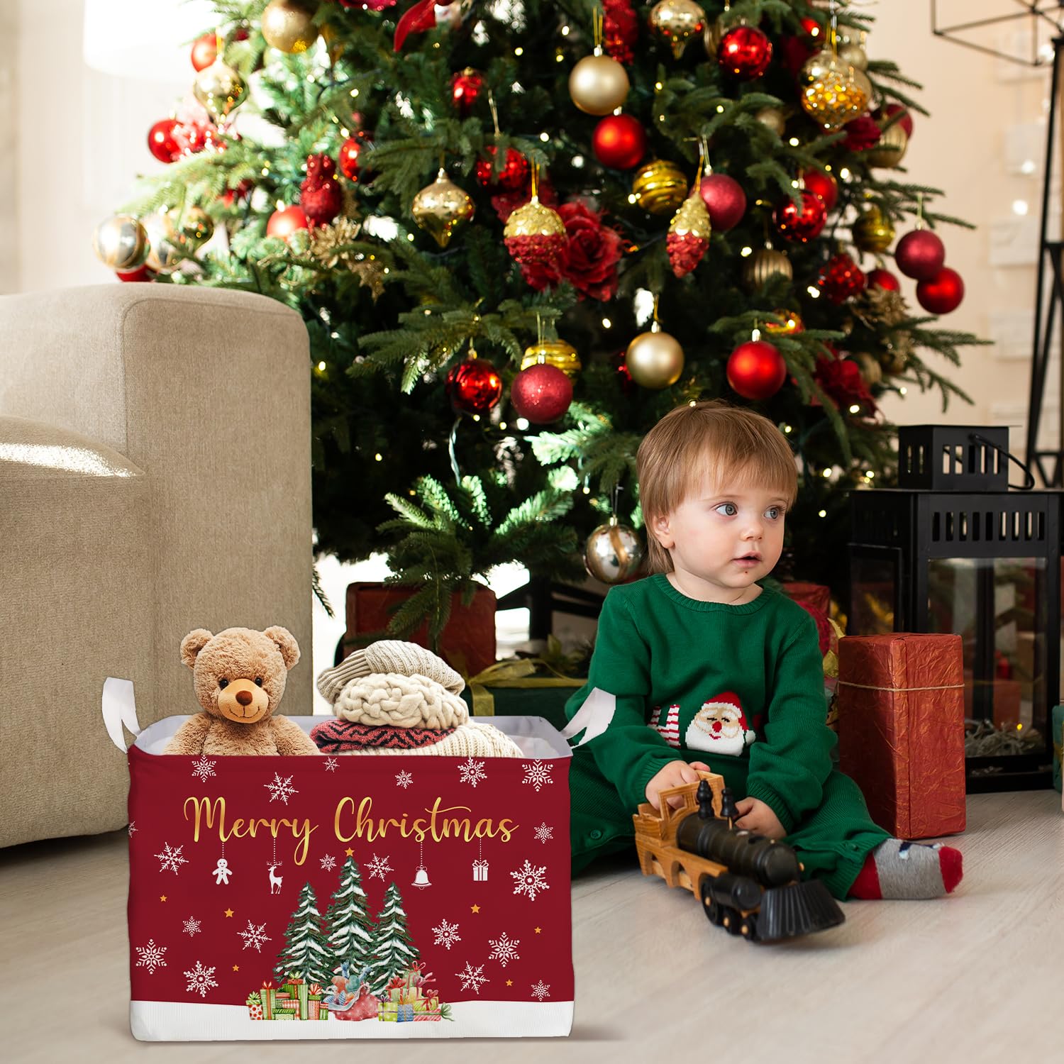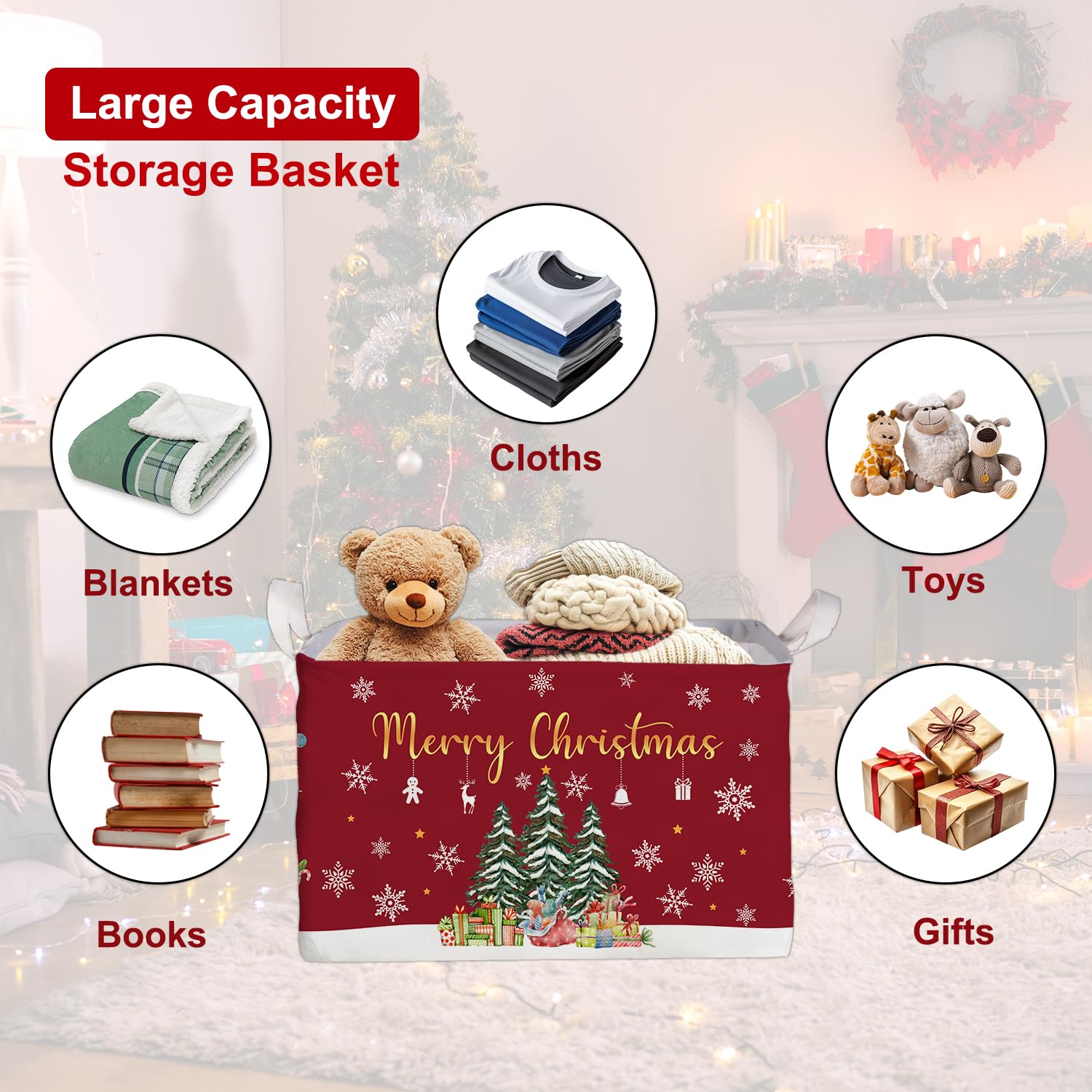 Spacious Size: 15 x 10 x 9 inches, spacious storage space for toys, clothes, books, blankets and seasonal decorations, the perfect size to keep your home organized during the Christmas holidays. Equipped with reinforced side handles for easy carrying, it can be folded for storage when not in use to save space. Convenient for home organization or travel.