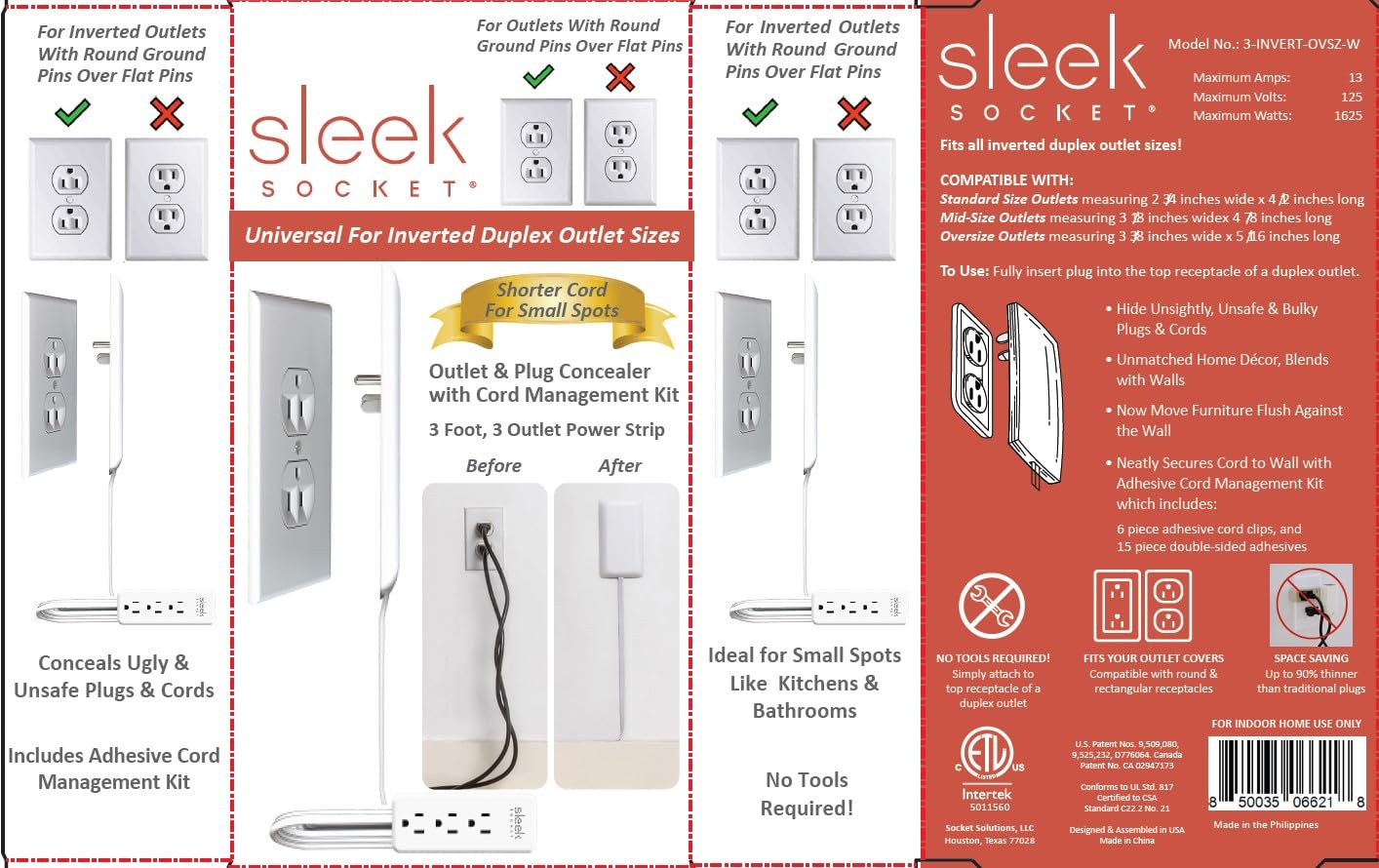 SLEEK SOCKET ORIGINAL AND PATENTED FLAT ULTRA-THIN OUTLET CONCEALER WITH EXTENSION