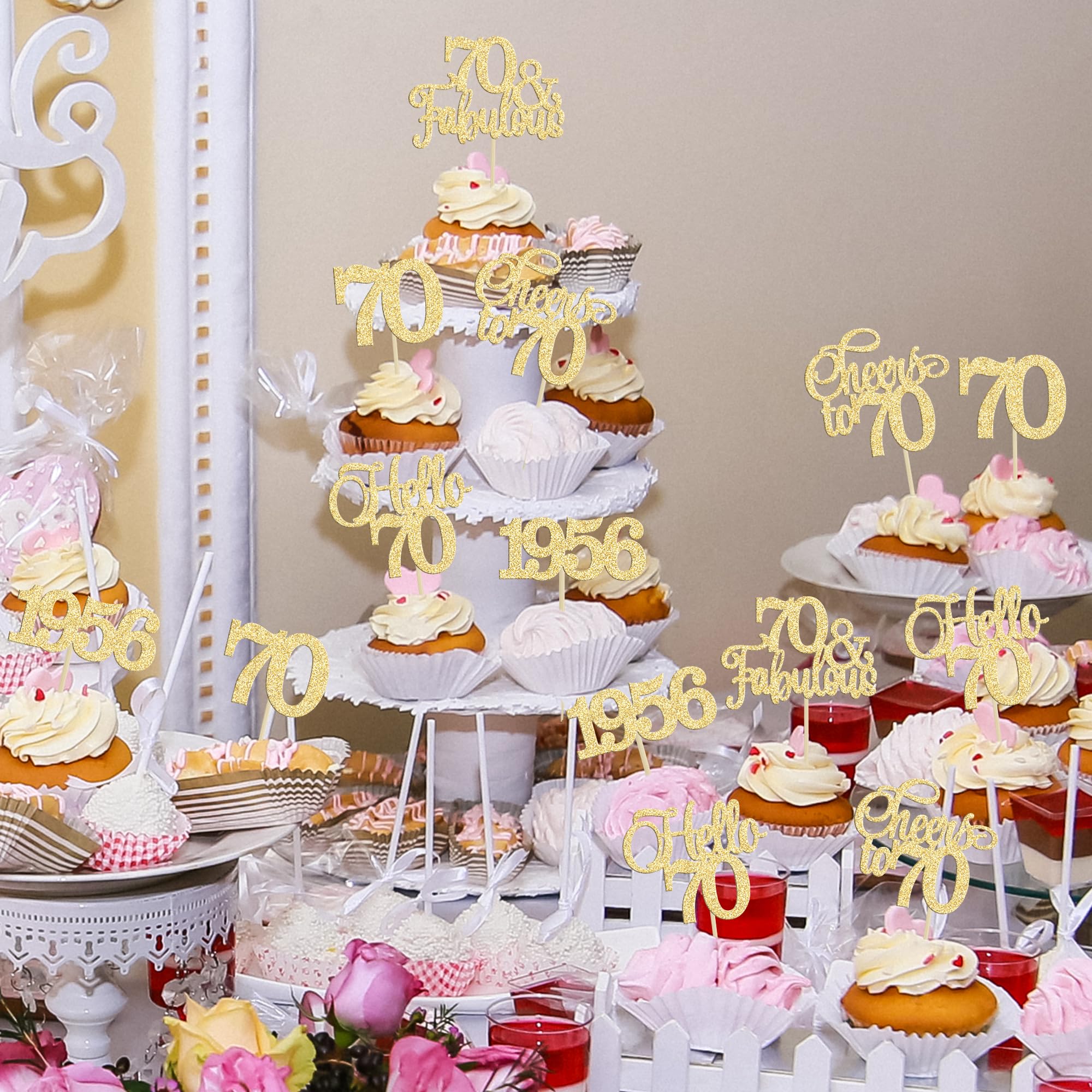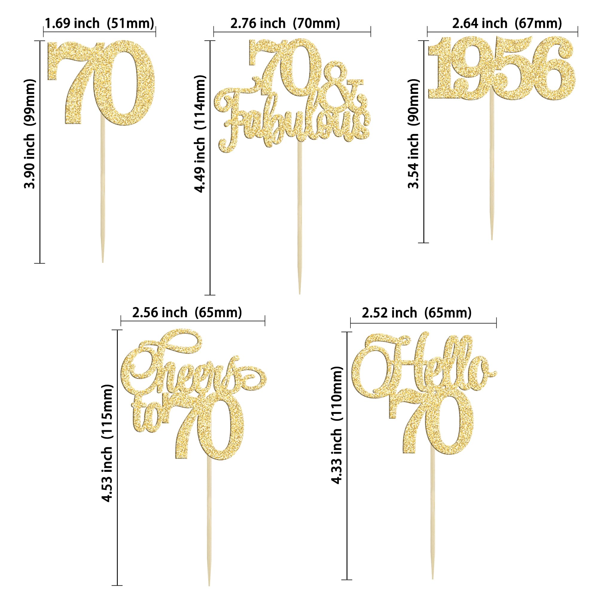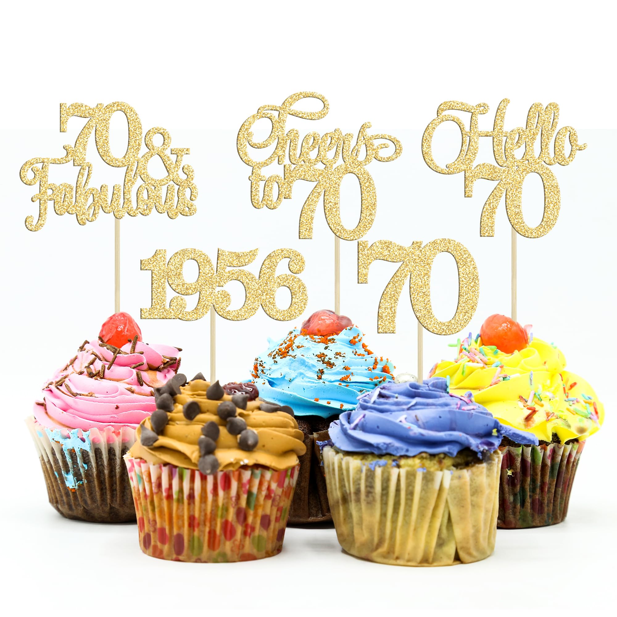 πππPackage included: 30Pcs 70th Cupcake Toppers. Comes with assembled, so you can insert into your cake directly, which make your cake more interesting.