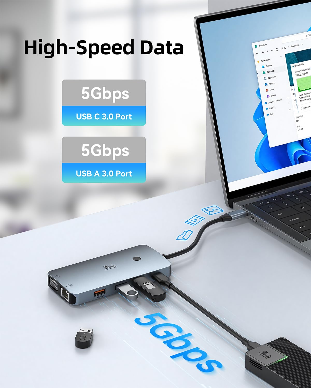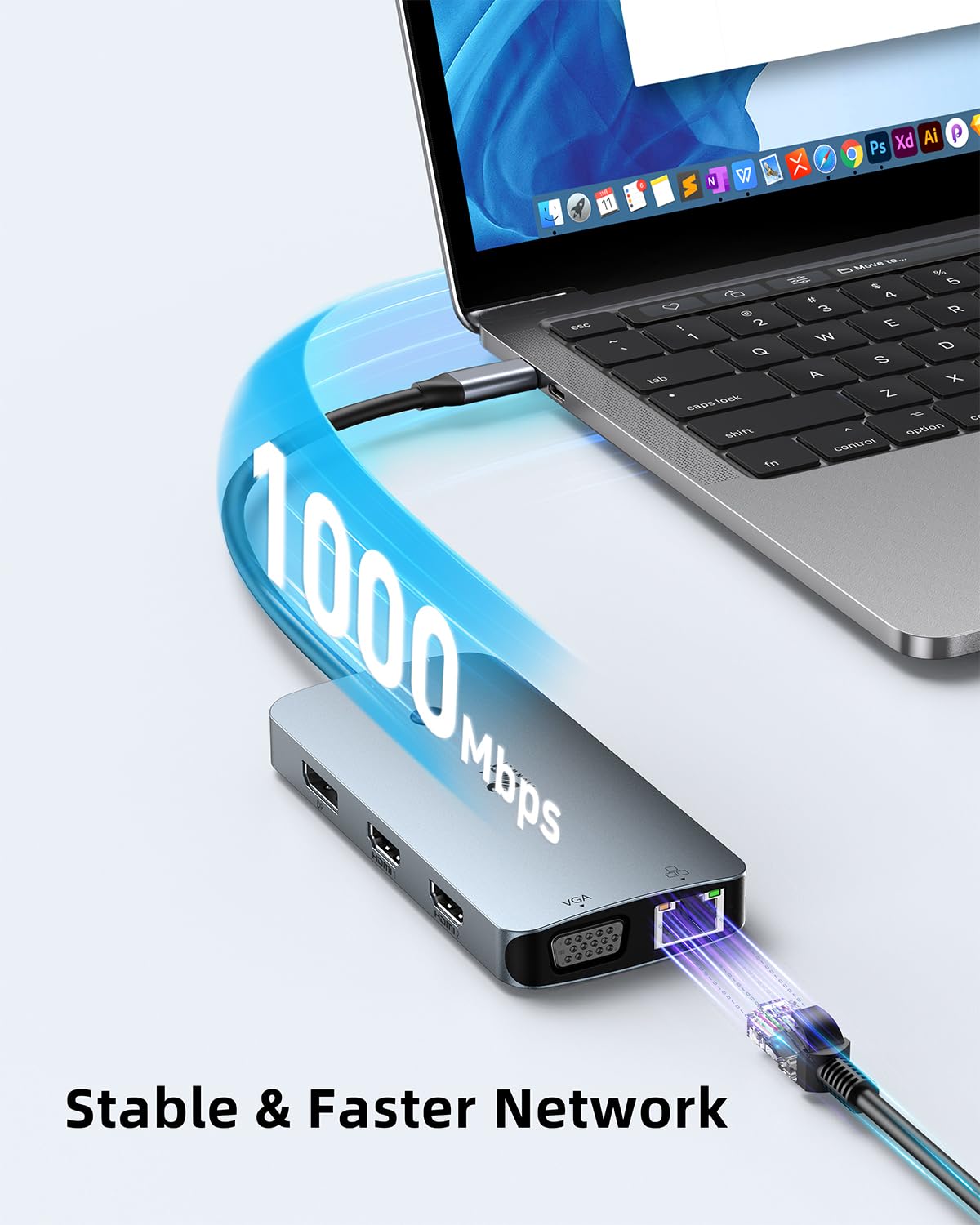 【Gigabit Ethernet & Advanced Chip】 Docking station ethernet port download movies quickly and reduce game lag. Equipped with the advanced smart chip, this usb c hub will effectively prevent overload, over-voltage, over-current, short circuit, overcharge, voltage regulation, temperature protection