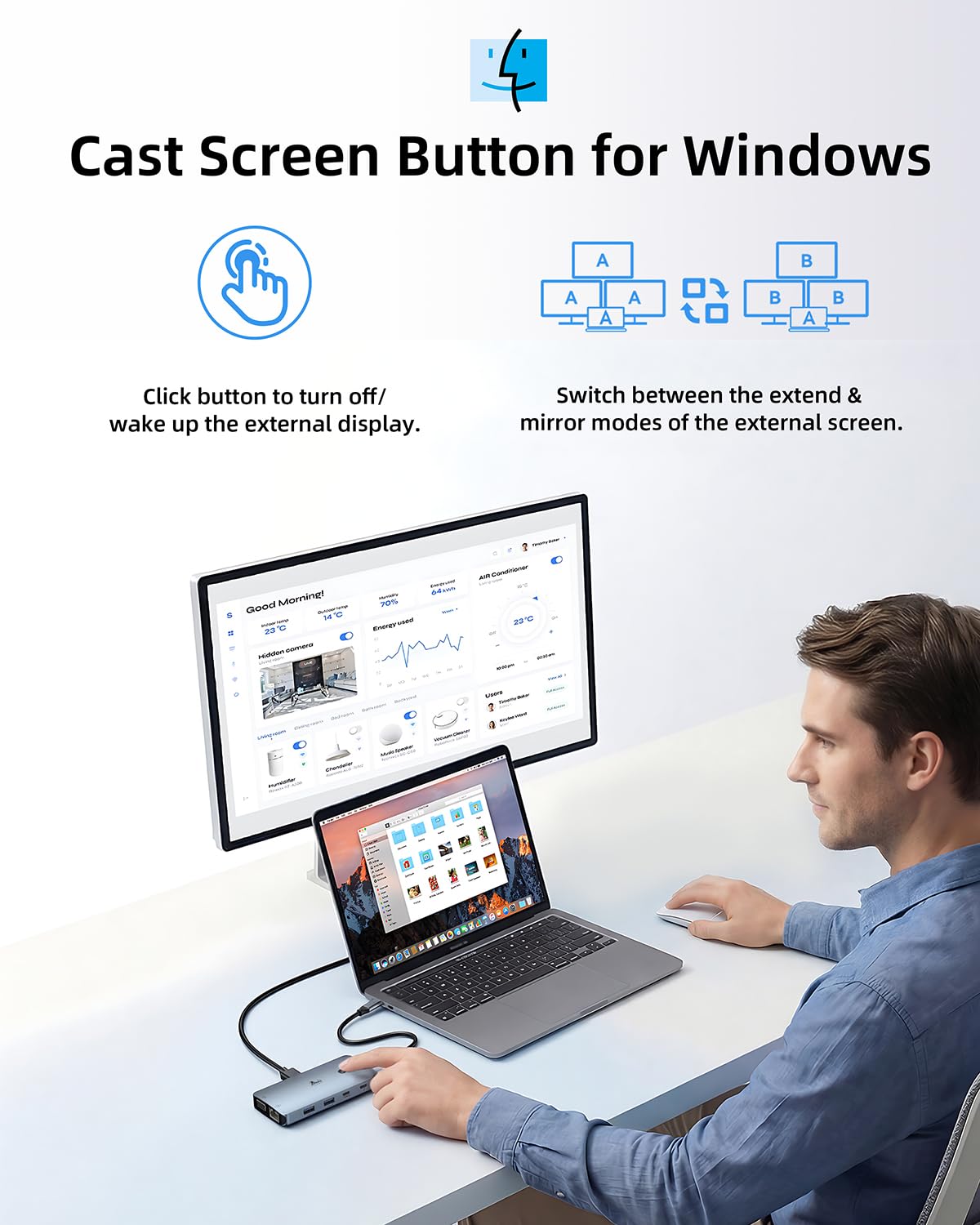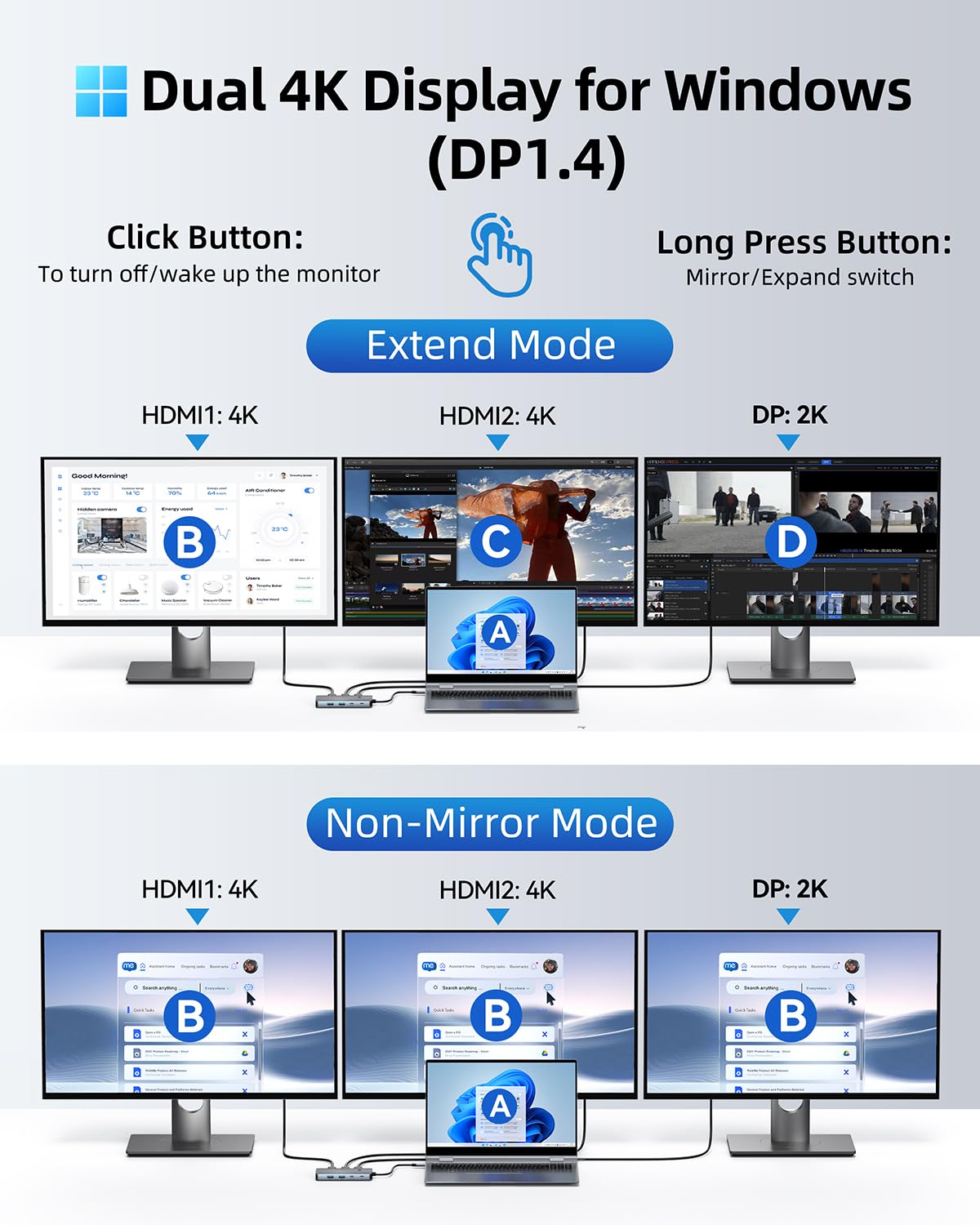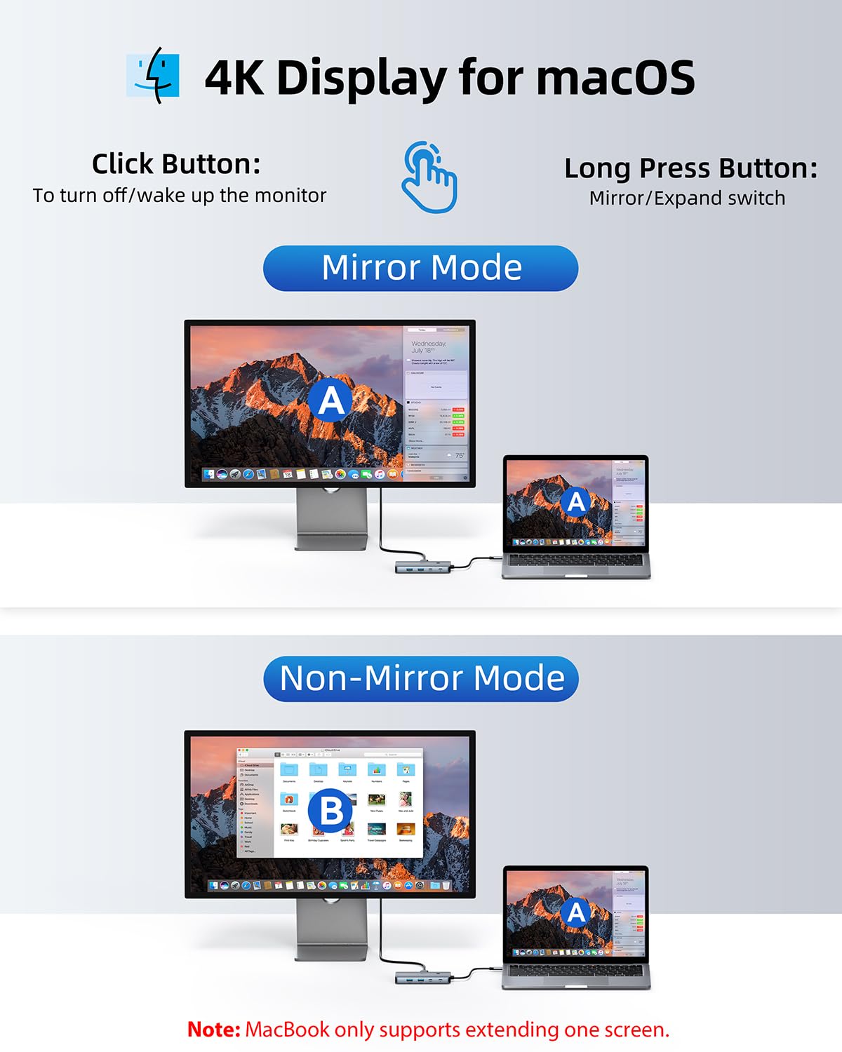 【4 Display Docking Station】This 9-in-1 usb c docking station only Windows system support MST and SST(Mirror & Extend Mode), HDMI port support up to 4K@60Hz (DP1.4 Source); DP port support up to 4K@60Hz. 【Note】 : For extend mode, macOS can only extend one monitor (4K@60Hz)