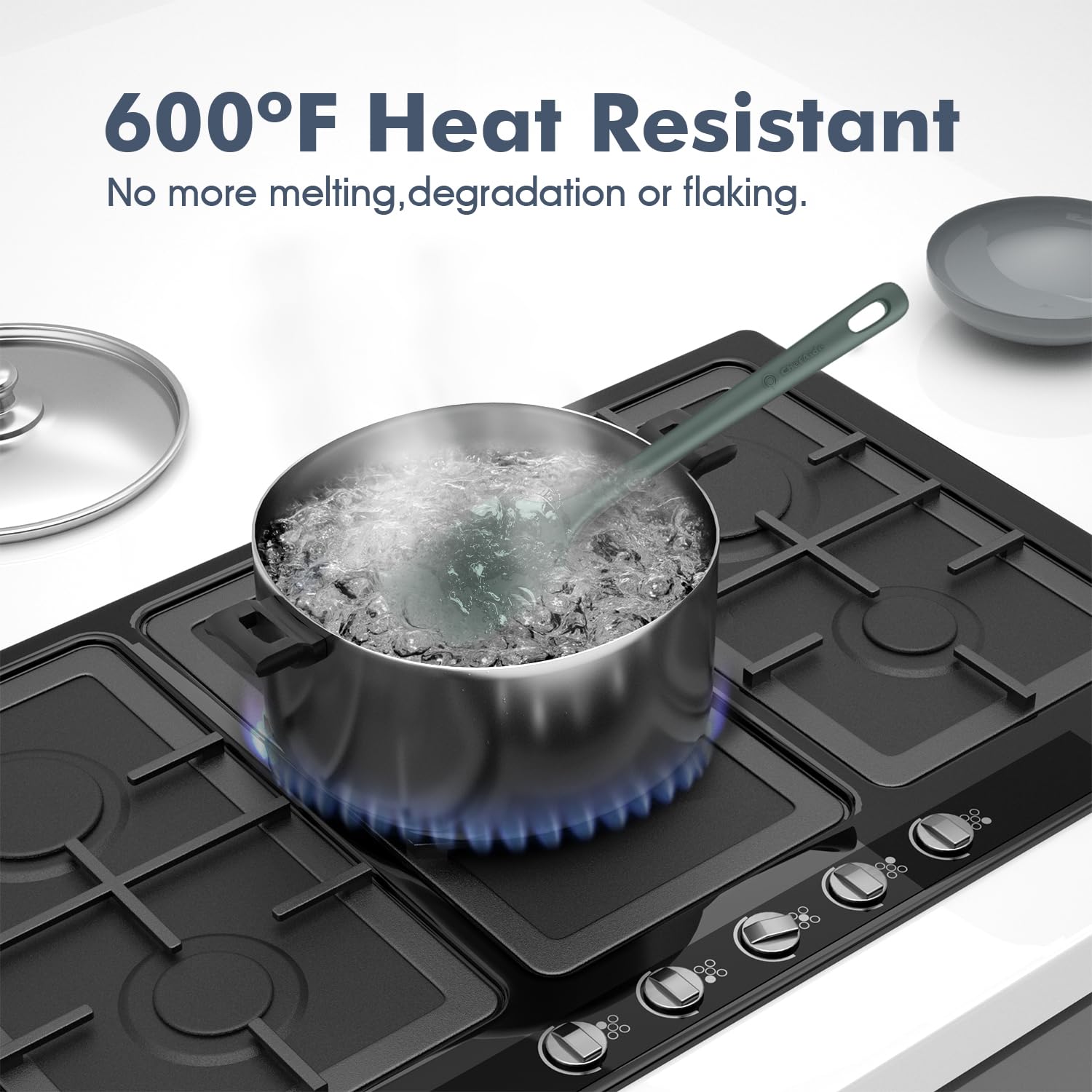 Premium 100% Food Grade Silicone: The silicone spatula set is made of healthy and friendly material, resistant to high temperatures up to 600 °F. No more melting, cracking and worrying