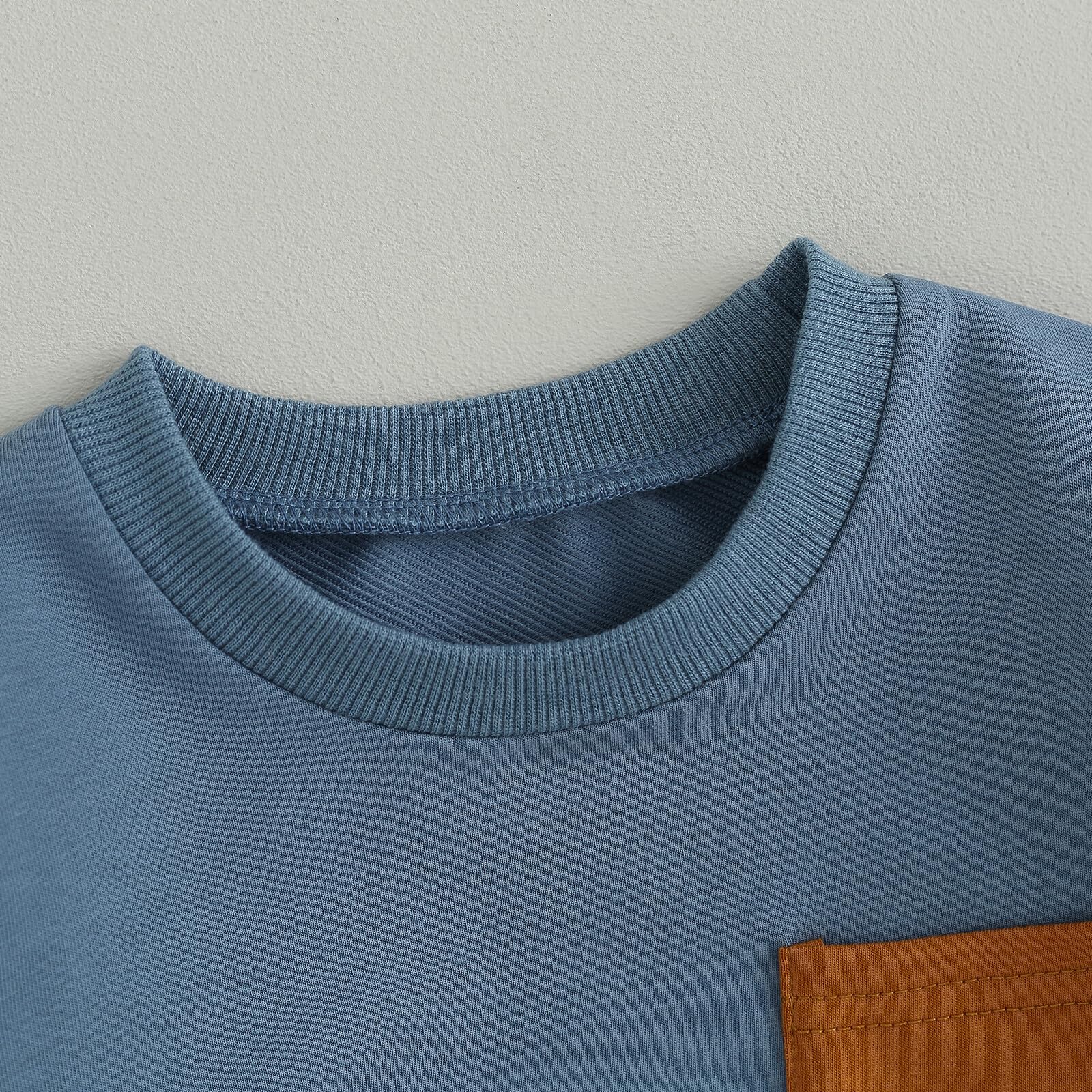 Design: Toddler boys casual 2pcs outfit sets, color block long sleeve crew neck pocket pullover sweatshirt jumper tops, drawstring casual long pants joggers, toddler baby boy sweatsuit, cute toddler boy fall clothes.